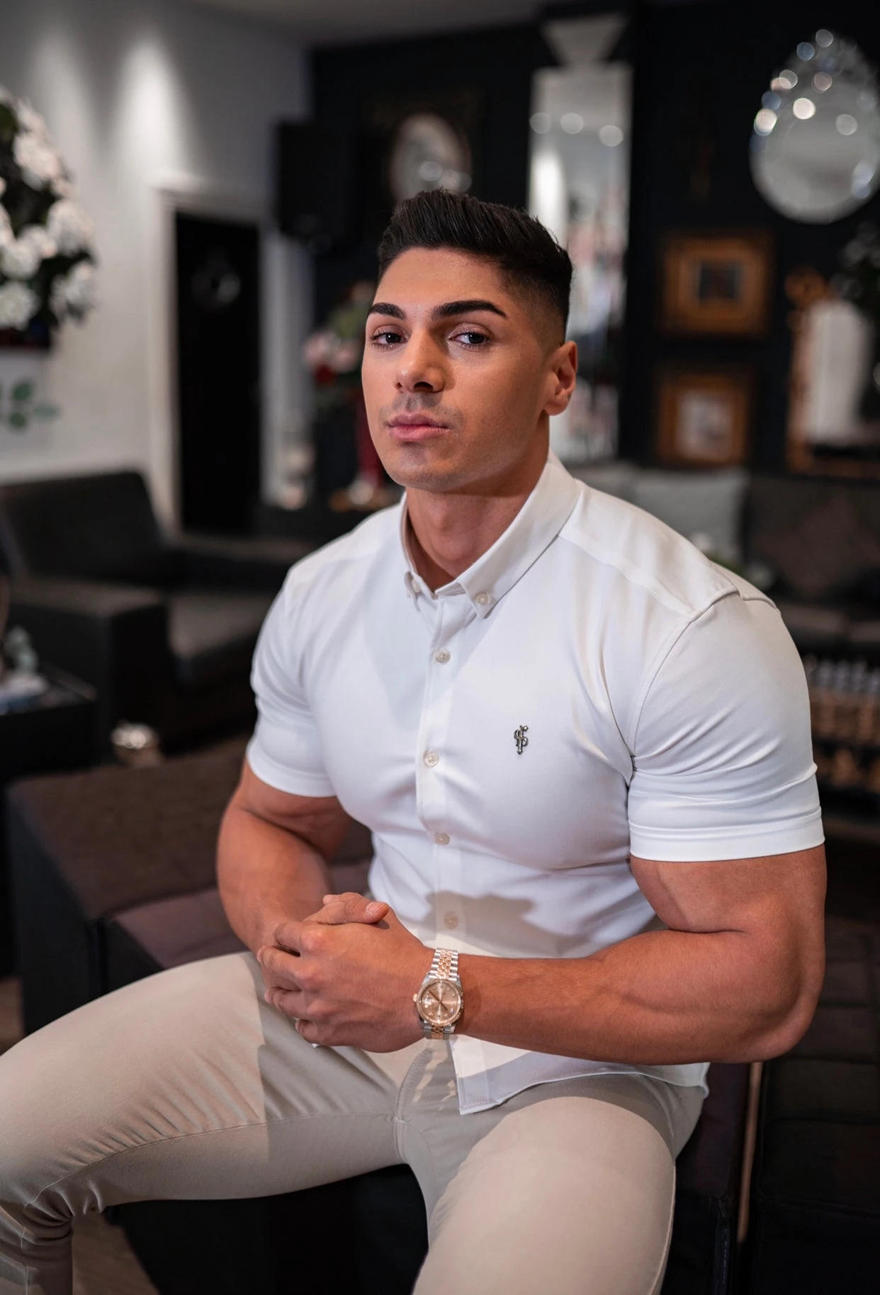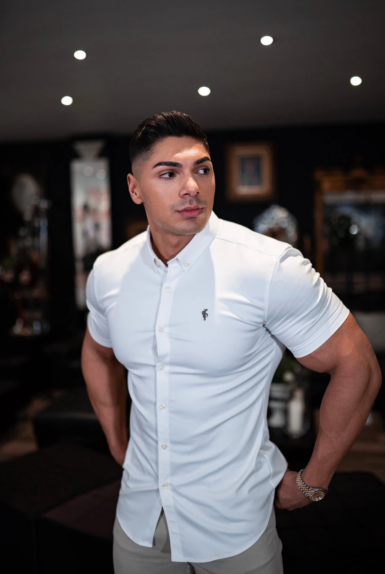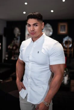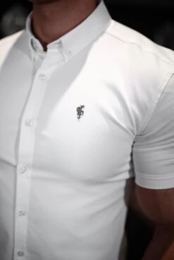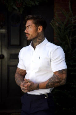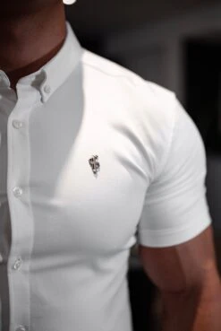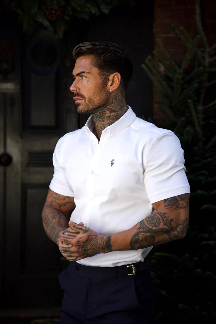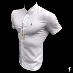 Father Sons Super Slim Stretch White Denim Short Sleeve with Metal Decal Emblem – FS627