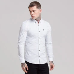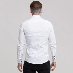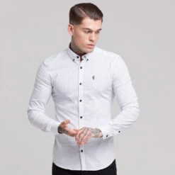 Father Sons Super Slim Stretch White & Navy Ditsy Print Long Sleeve FS415