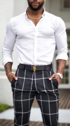 Father Sons Super Slim Stretch White Self Woven Stripe Long Sleeve with Button Down Collar – FS989