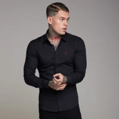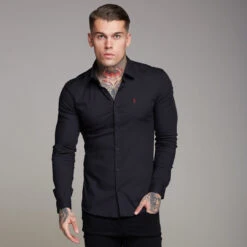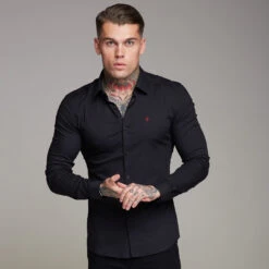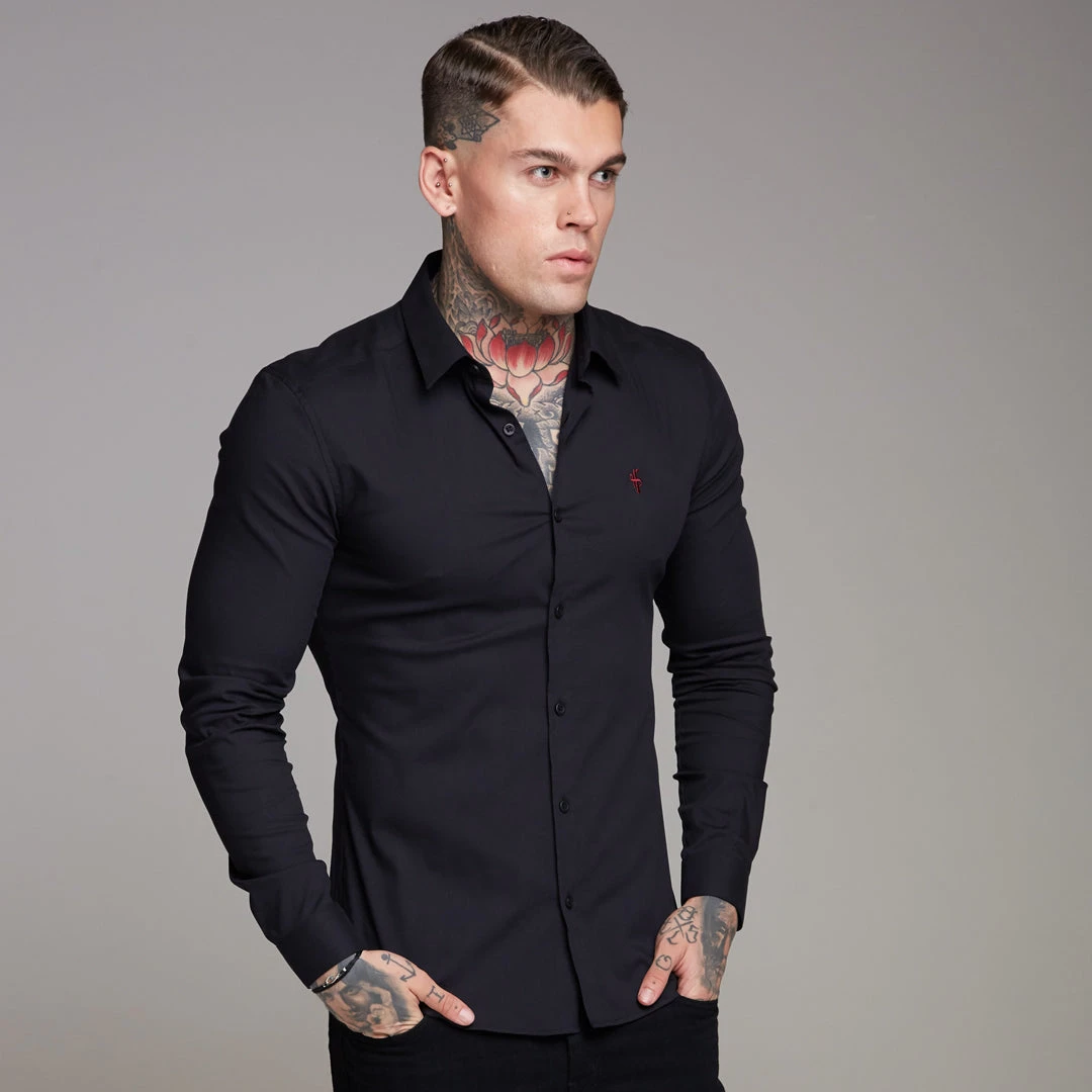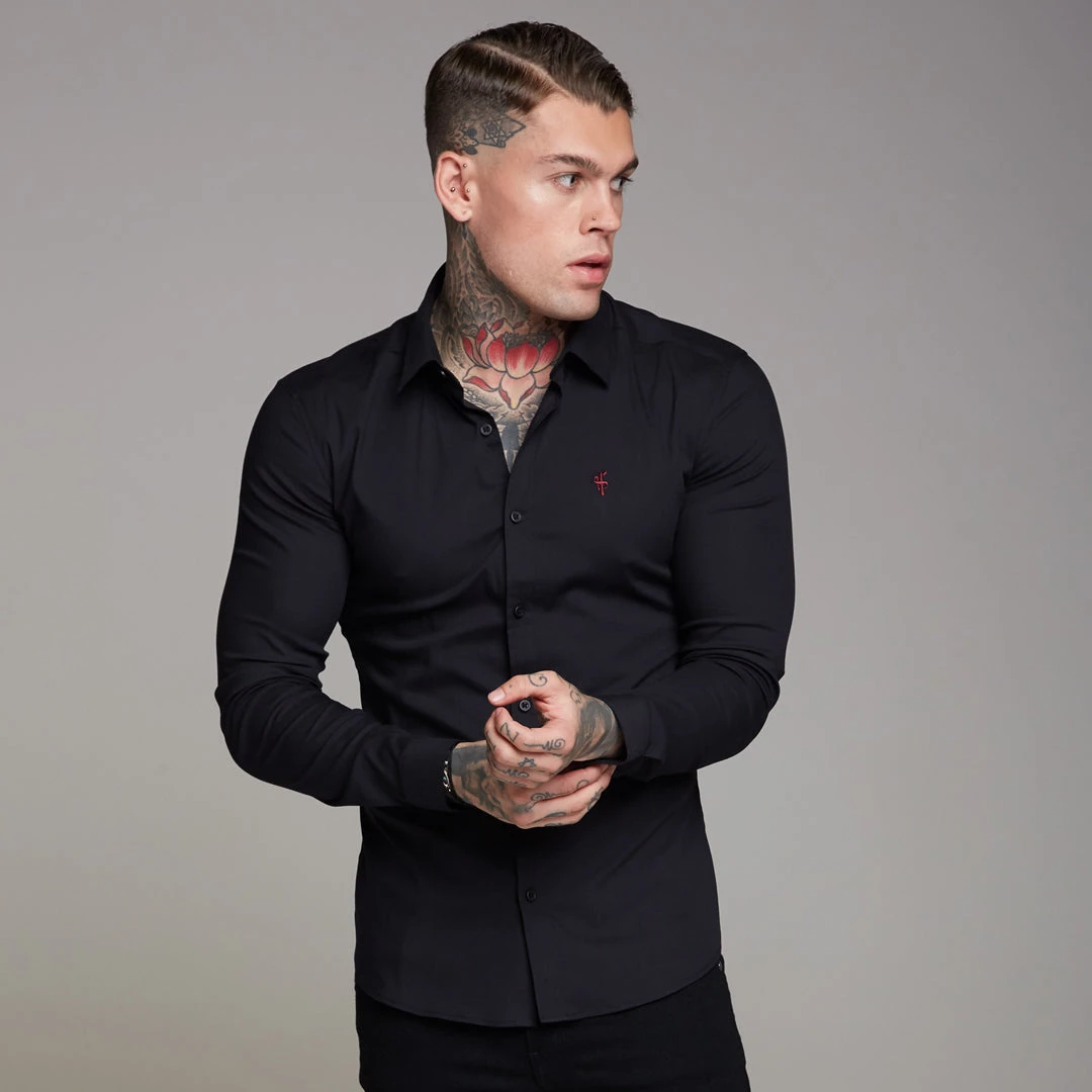 Father Sons Super Slim Ultra Stretch Classic Black Shirt (Red embroidery) – FS354