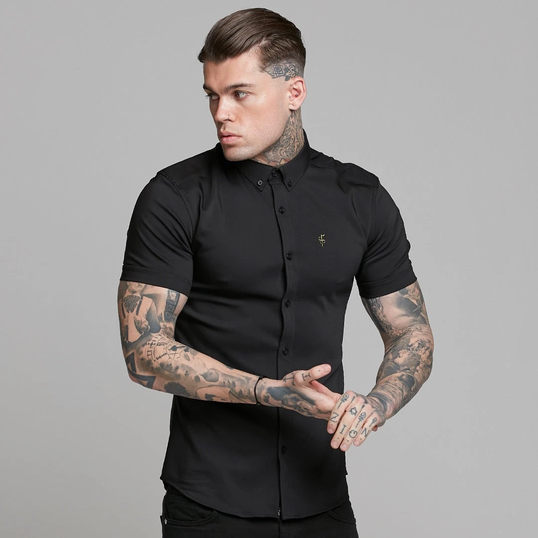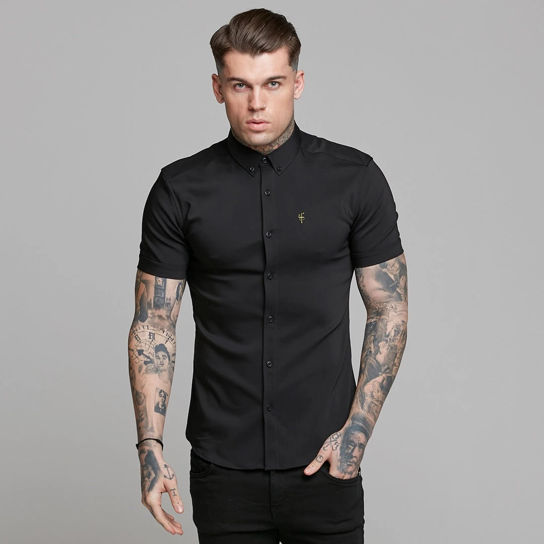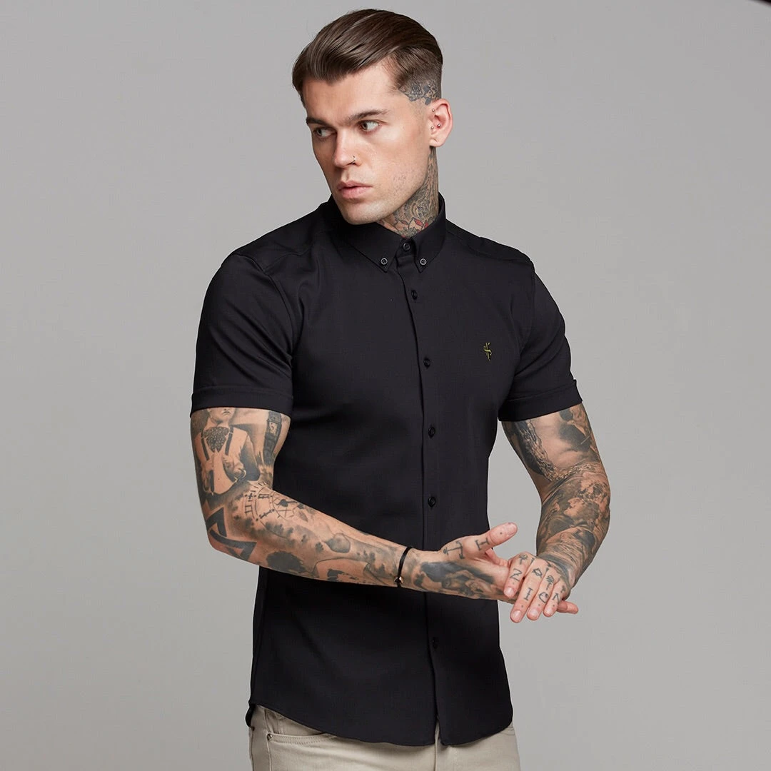 Father Sons Super Slim Ultra Stretch Classic Black Short Sleeve (Khaki Embroidery) – FS481