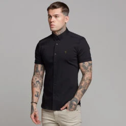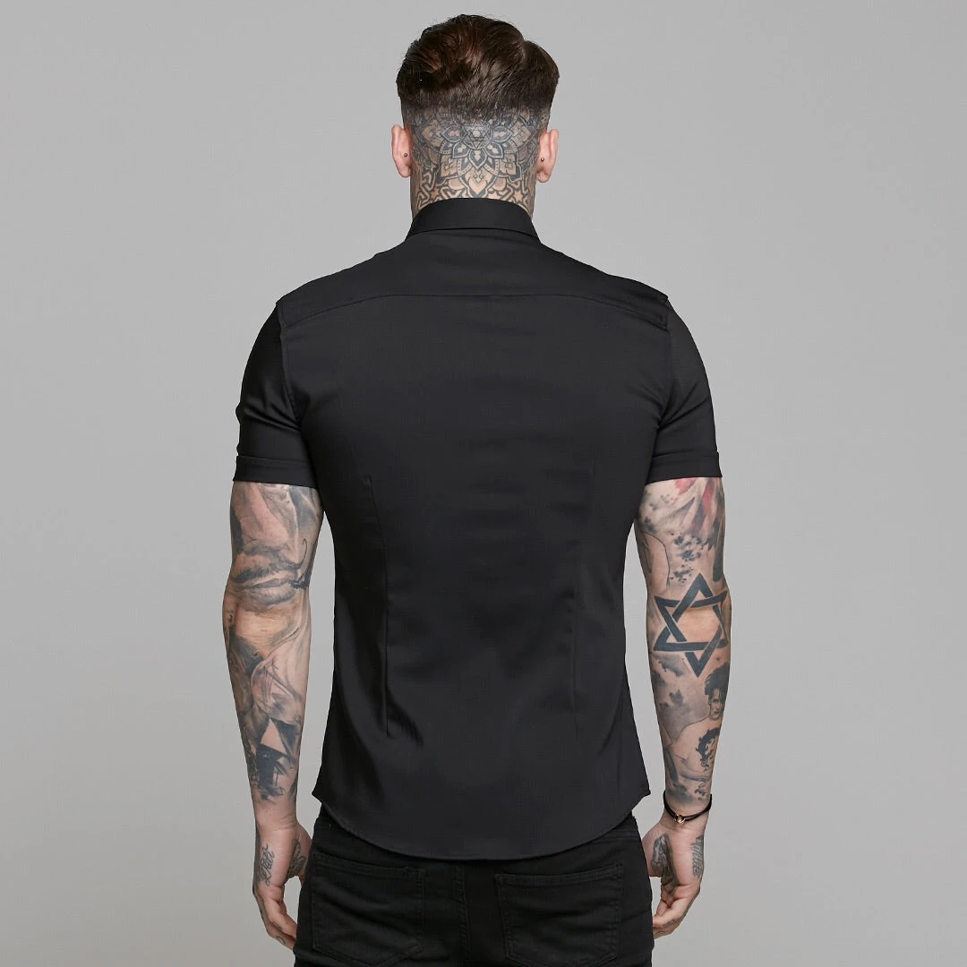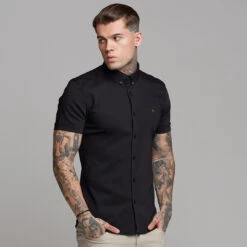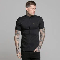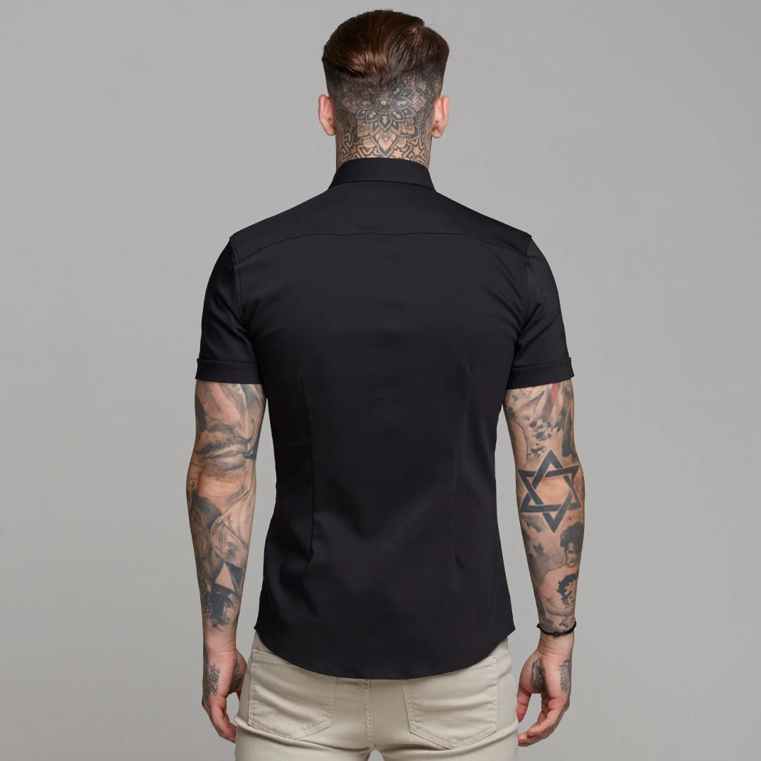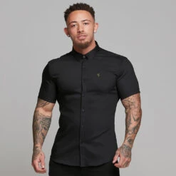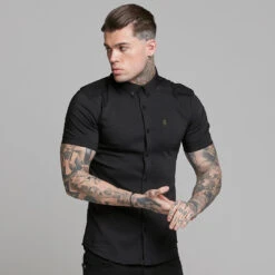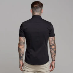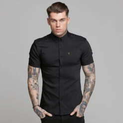 Father Sons Super Slim Ultra Stretch Classic Black Short Sleeve (Khaki Embroidery) – FS481