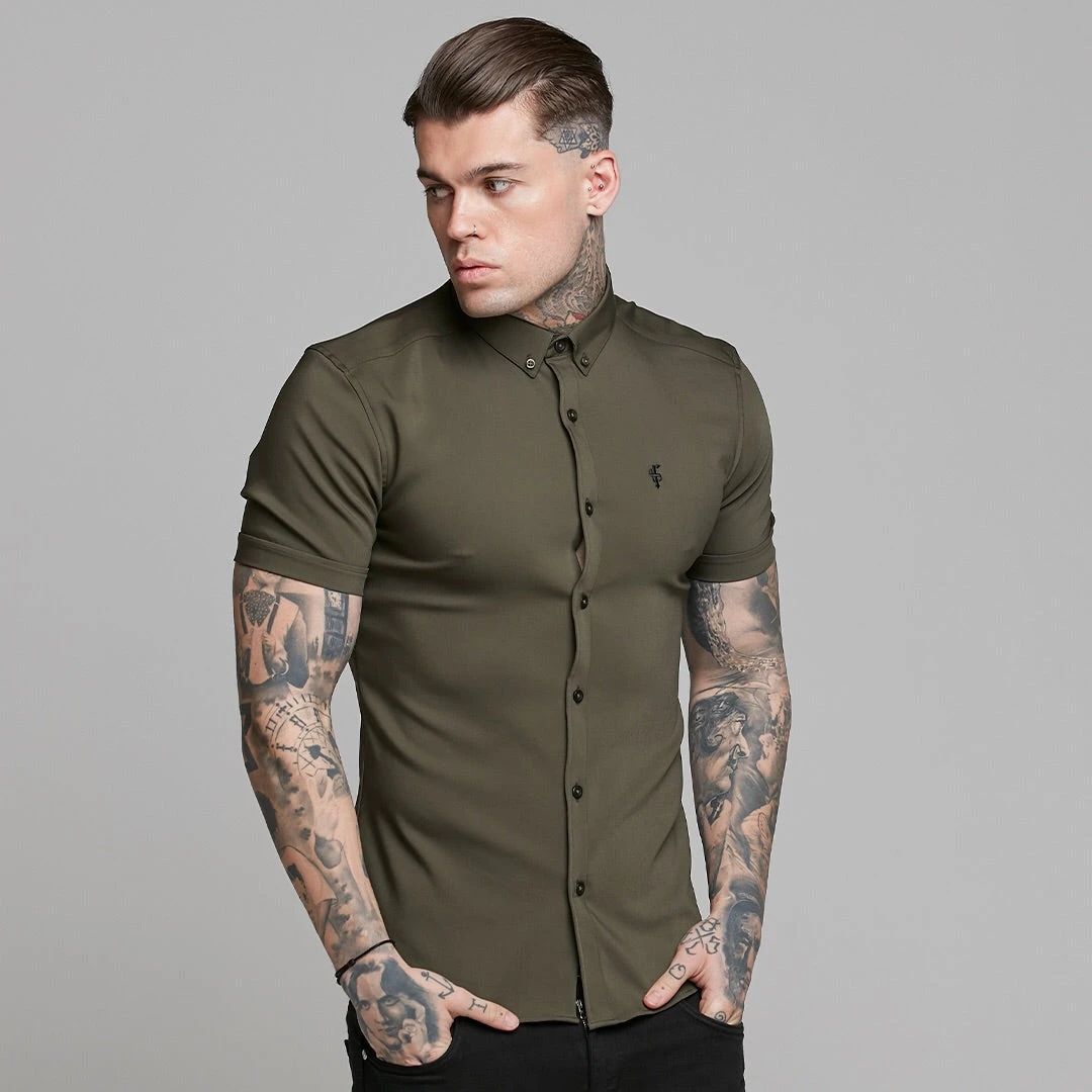 Father Sons Super Slim Ultra Stretch Classic Olive Short Sleeve – FS483