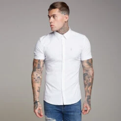 – Extra elastane added to give the perfect muscle fit shirt.