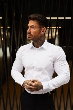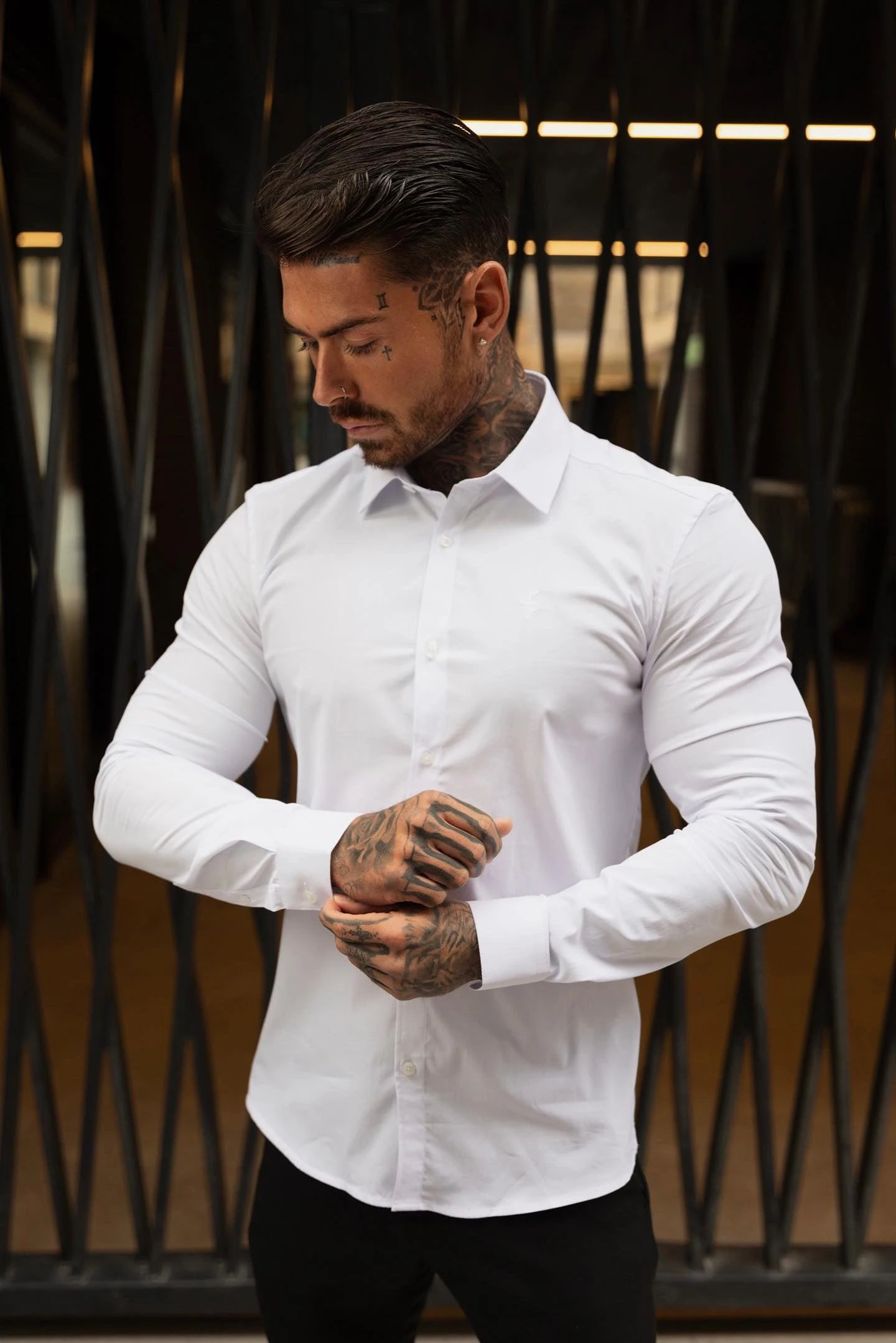 Father Sons Super Slim White Long Sleeve Stretch with Back Box Pleat and Side Seam Detail – FS945