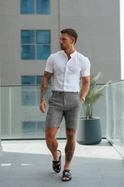Father Sons Tailored Prince of Wales Check Blac / Ecru Shorts With Silver Side Adjusters – FSTS005