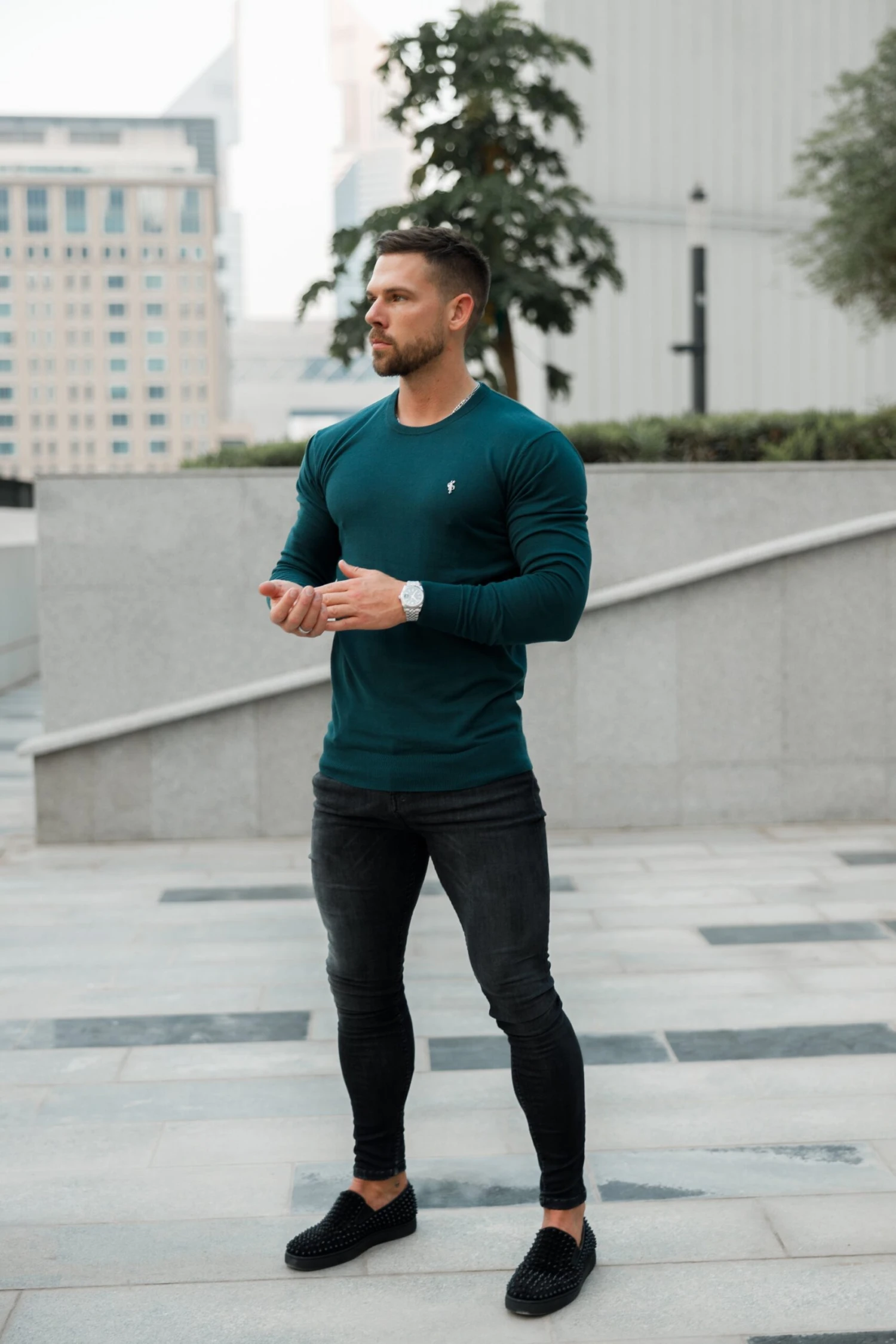 – Cotton/Elastane for the perfect stretch fit