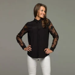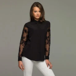 The Folly shirt is our most popular design, it’s a classic blouse with an elegant twist. The main body is 100% cotton and drapes beautifully over the torso, and its contrast intricate floral lace like sleeves give it a sophisticated edge. It has a concealed button front which gives it a smart clean finish. There’s little this blouse won’t work with. Wear draped over or tucked in jeans/trousers for work or a lunch date, or tucked into a skirt. This shirt is perfect for day and night.