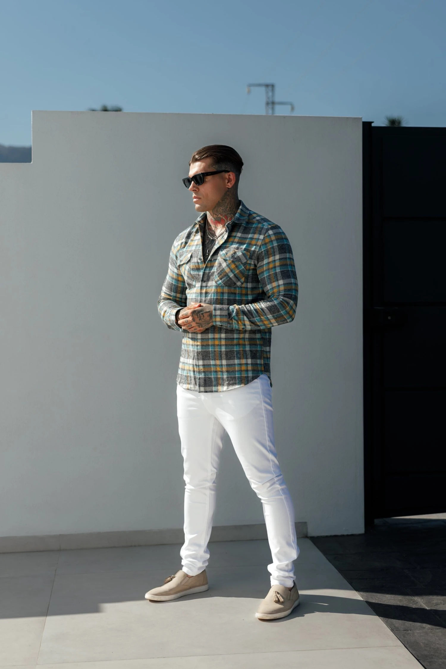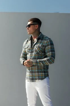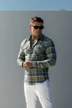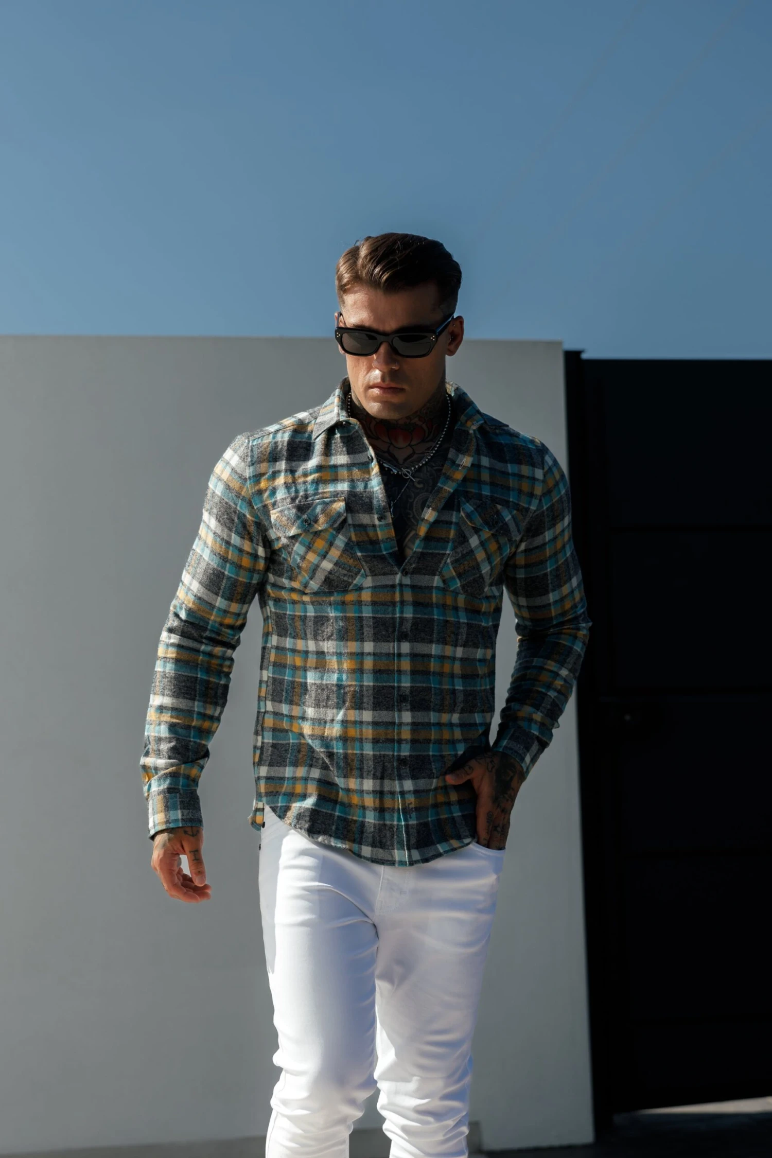 Father Sons Aqua / Yellow Check Shacket With Double Pockets Shacket – FS1073