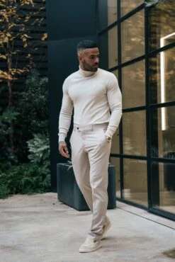Father Sons Beige Roll Neck Jumper With FS Branding – FSN204