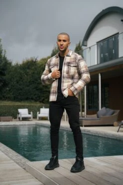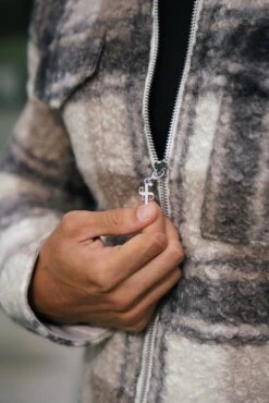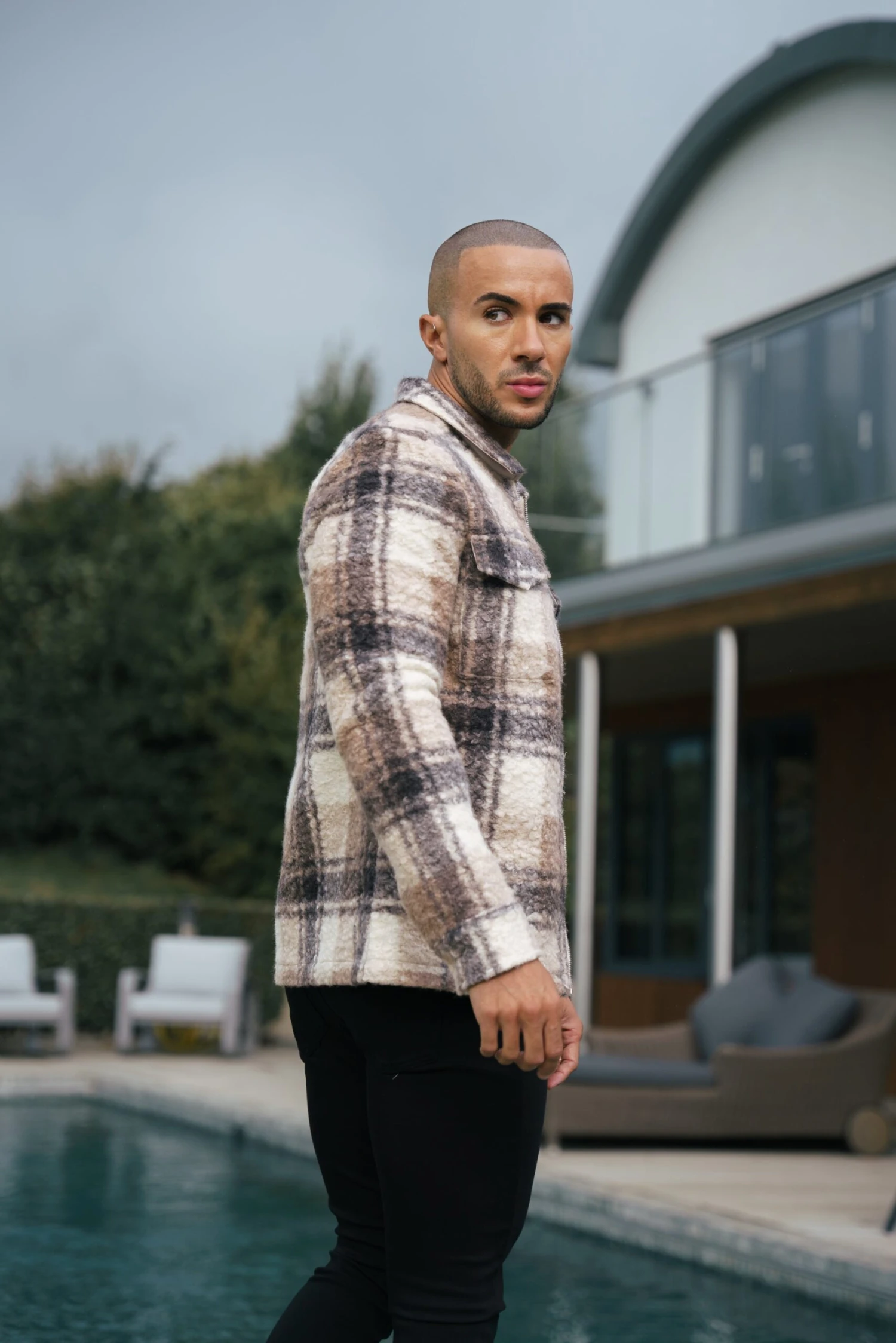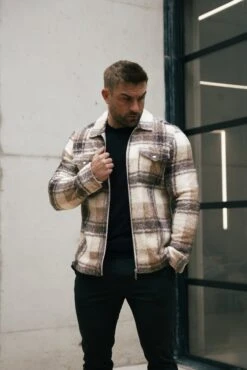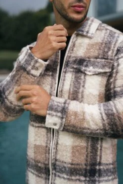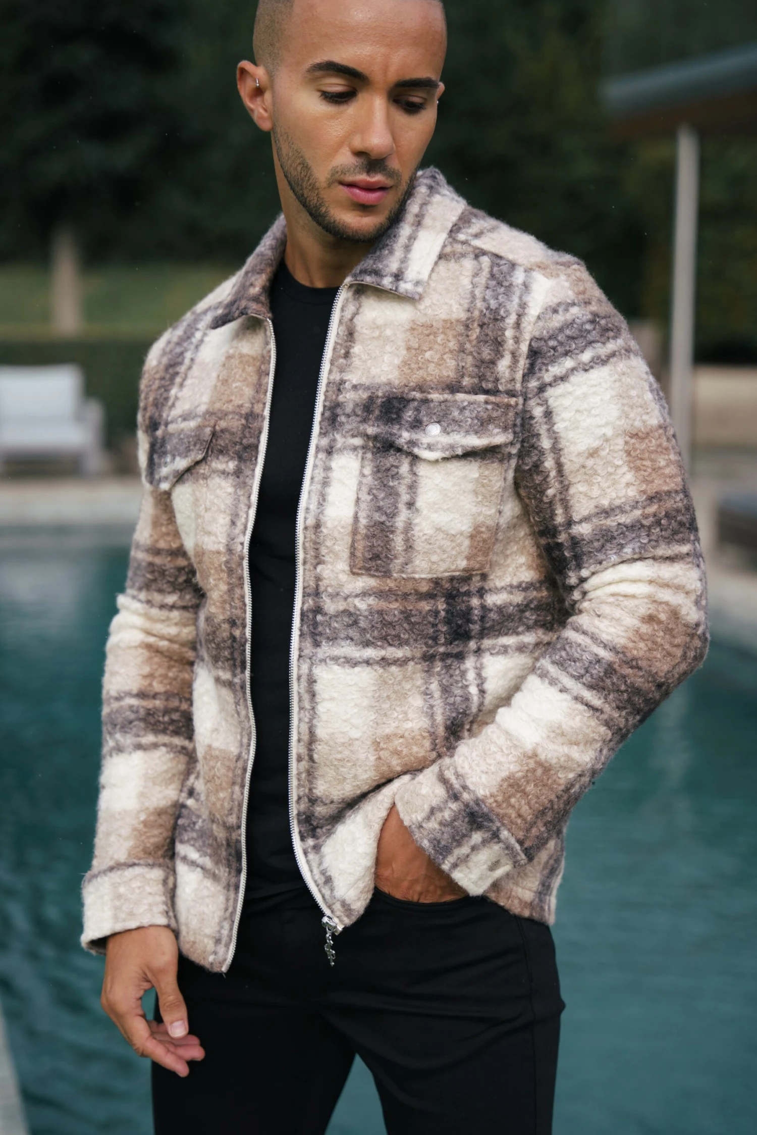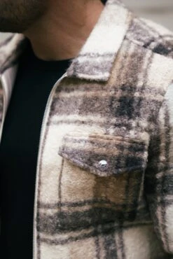 Father Sons Boucle Zipped Check Jacket Taupe – FSN155