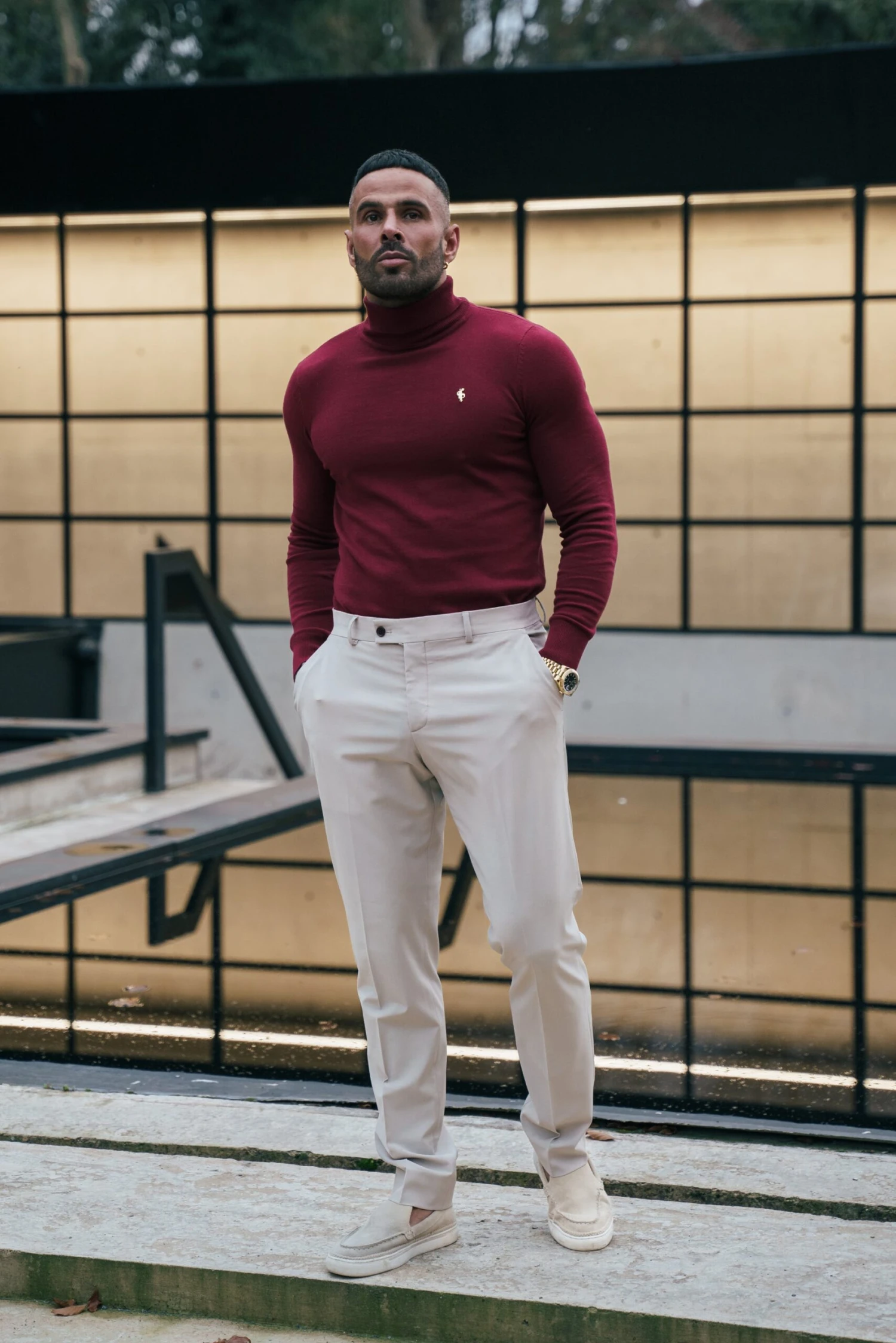 Father Sons Brick Red Roll Neck Jumper With FS Branding – FSN203
