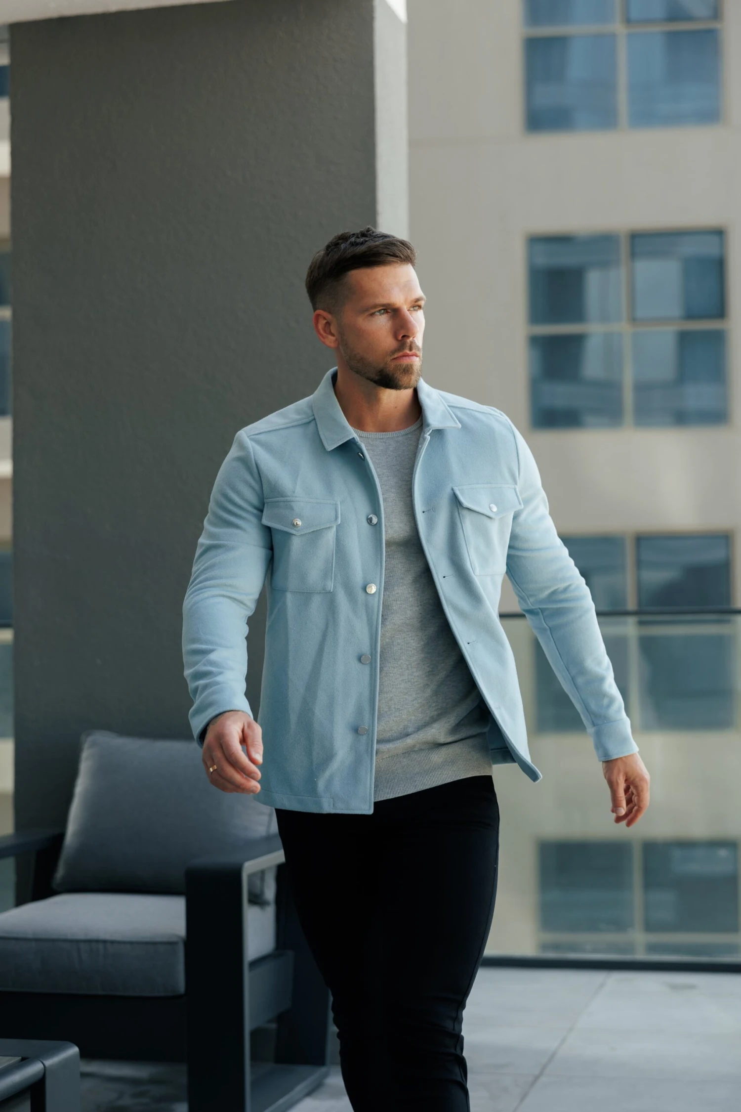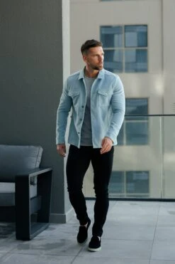 Father Sons Brushed Button Up Plain Jacket Blue – FSN185