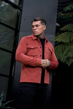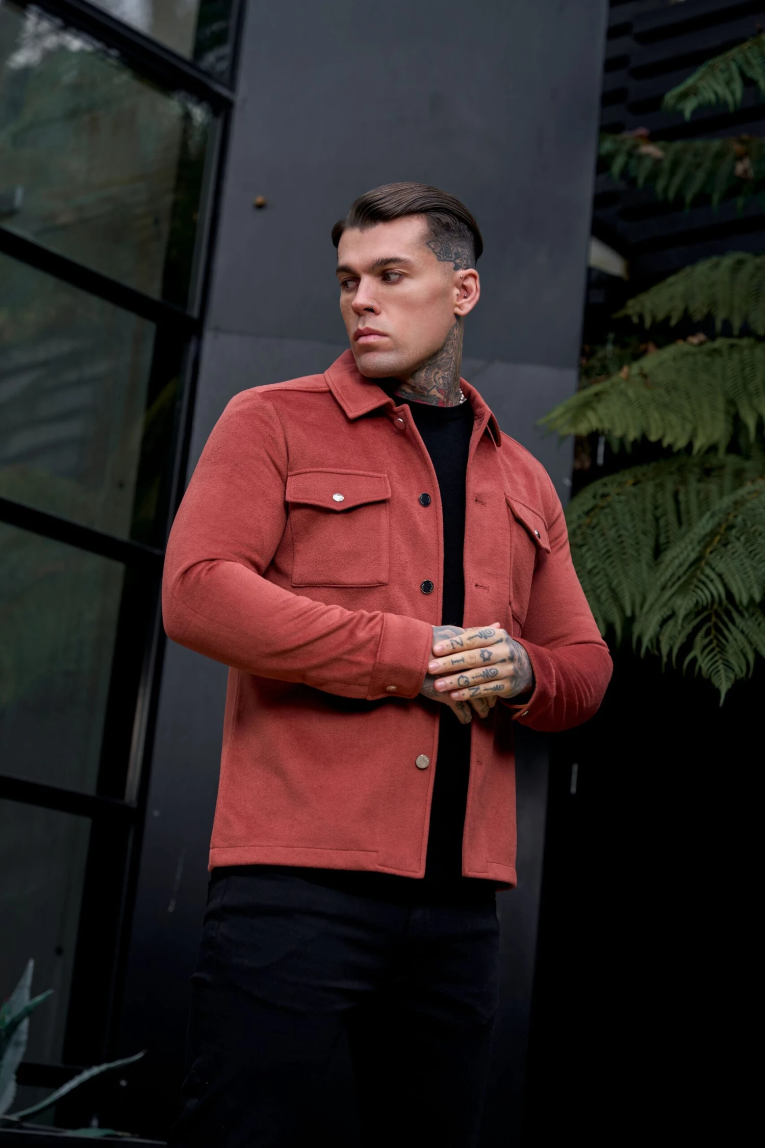 Father Sons Brushed Button Up Plain Jacket Rust – FSN181