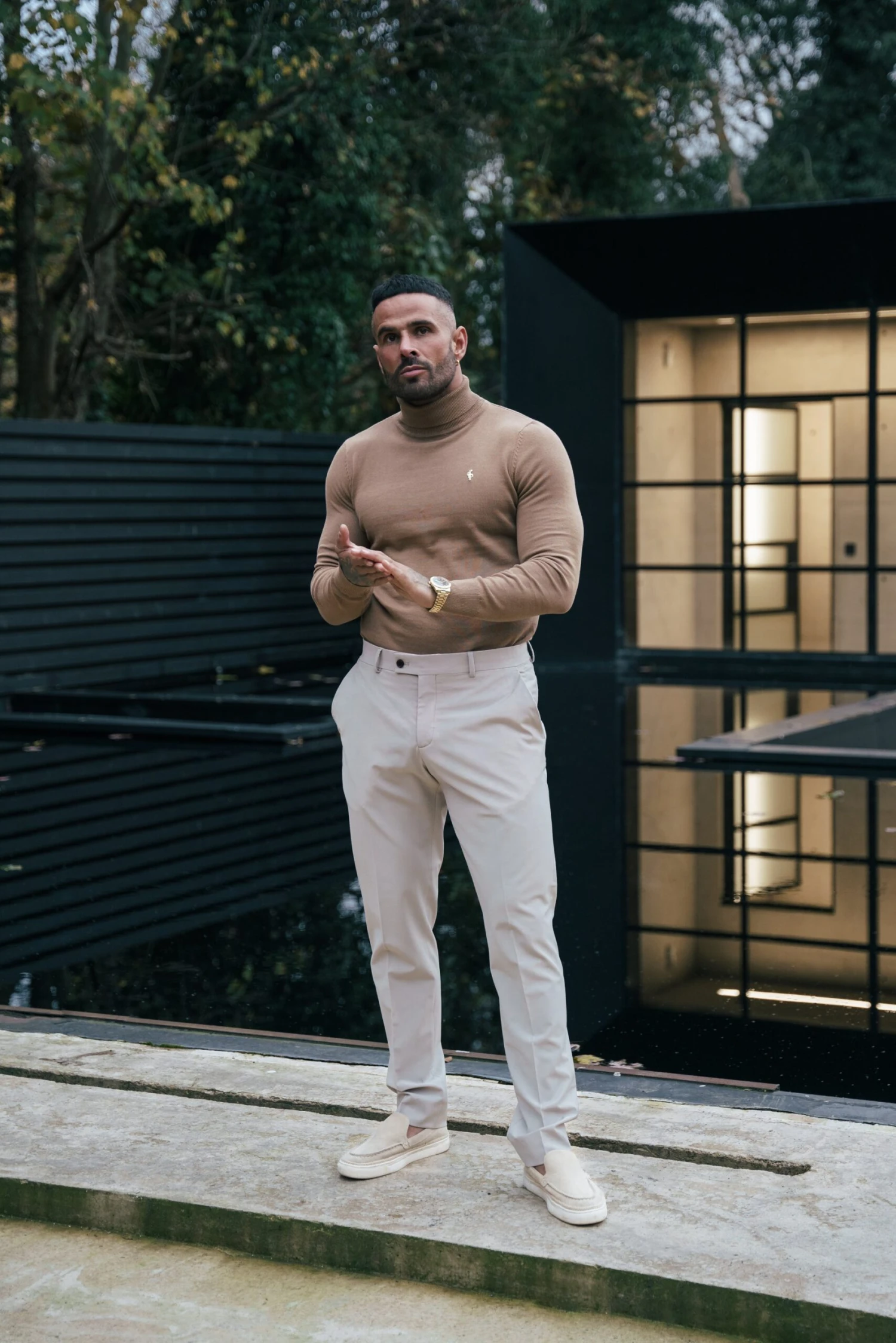 Father Sons Camel Roll Neck Jumper With FS Branding – FSN202