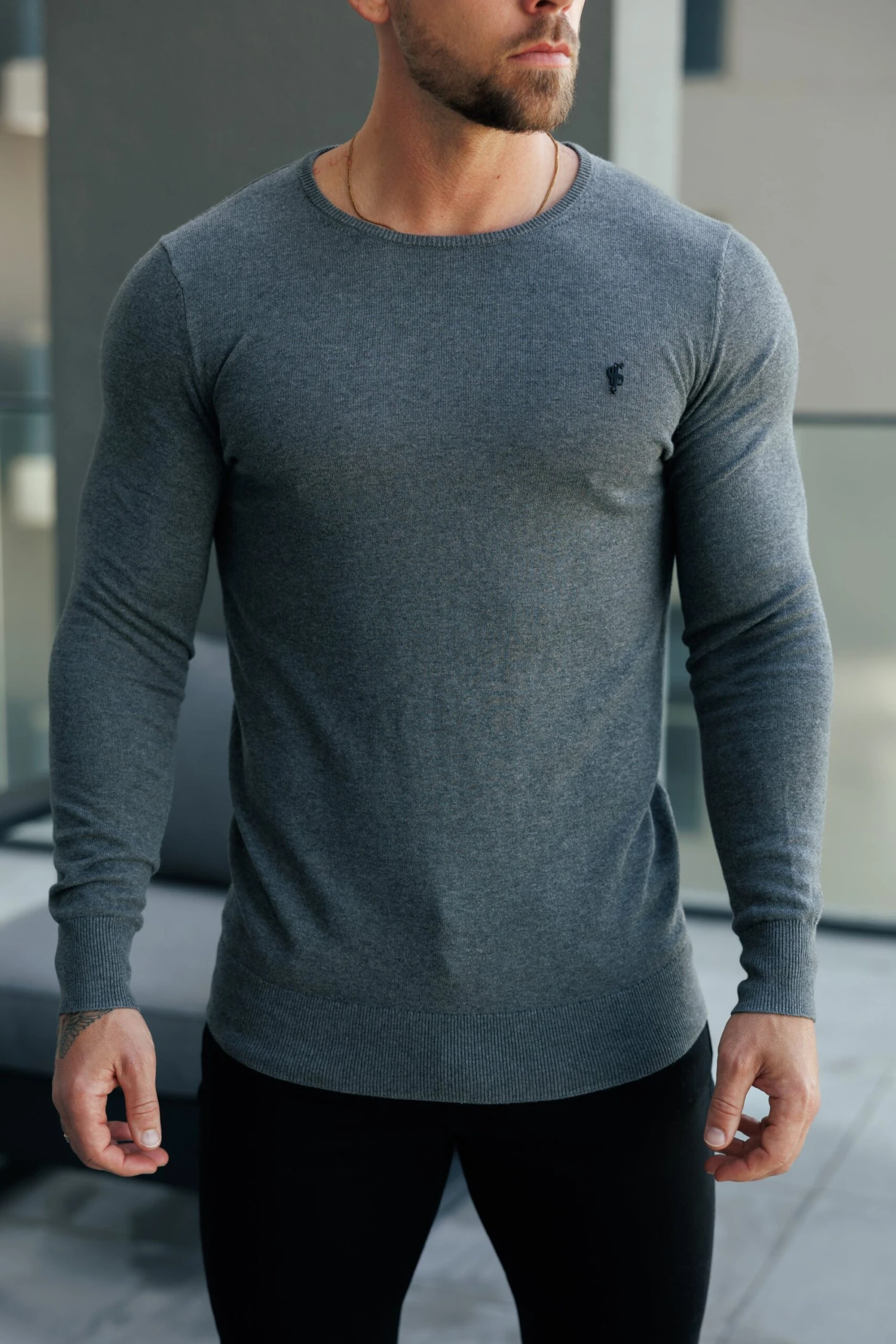 Father Sons Charcoal Crew Neck Jumper With FS Branding – FSN198