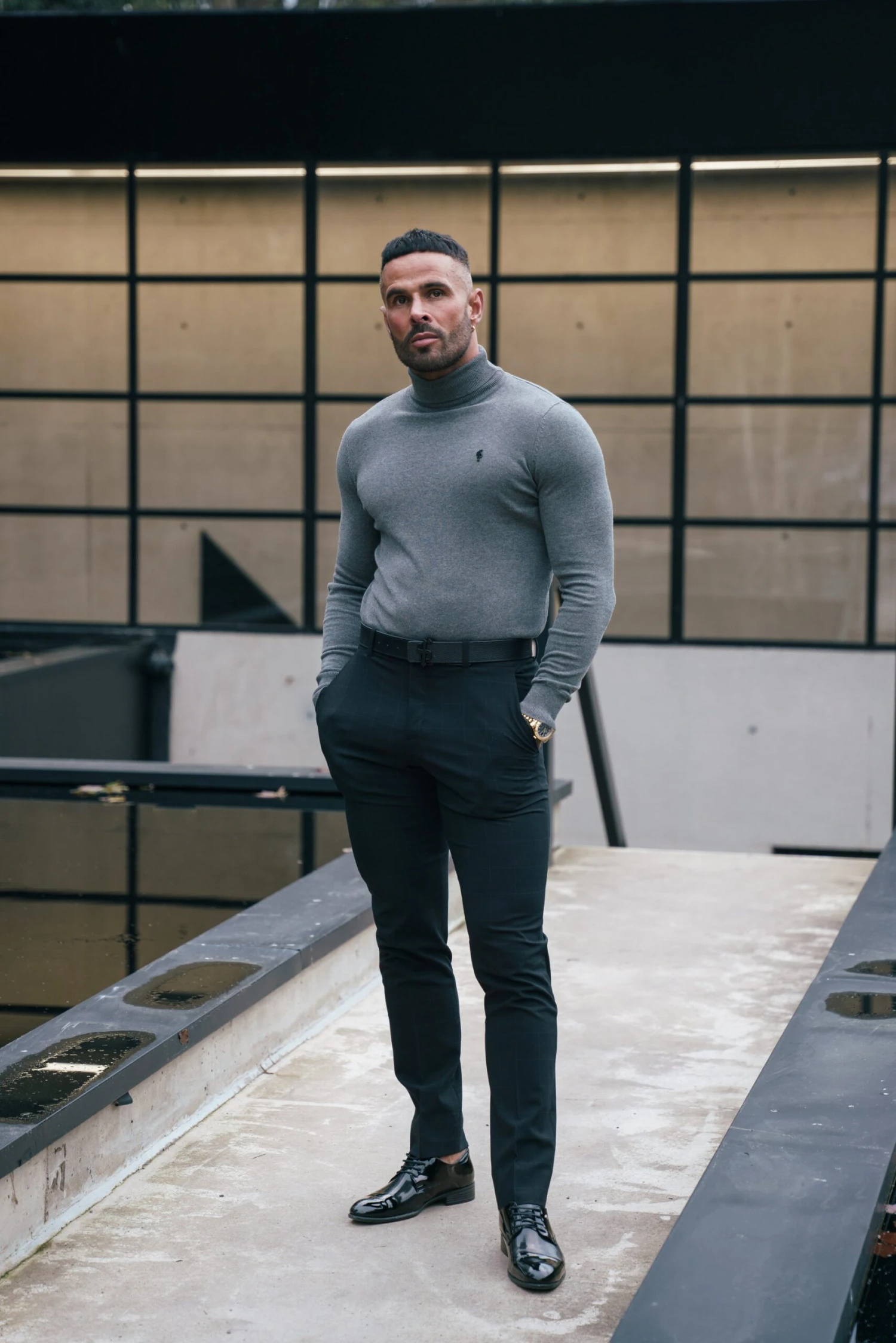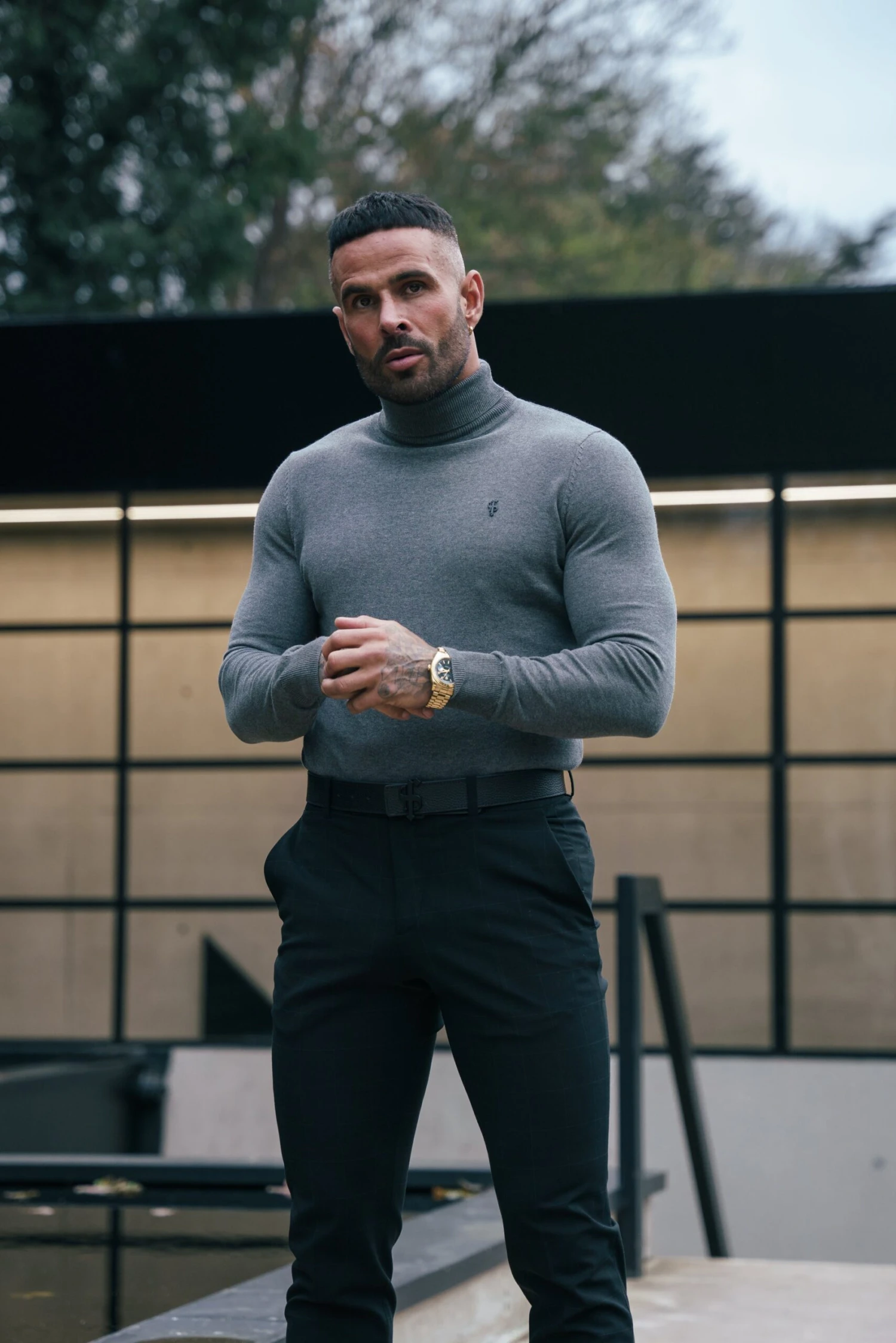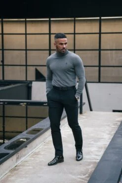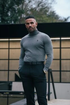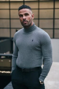 Father Sons Charcoal Roll Neck Jumper With FS Branding – FSN207