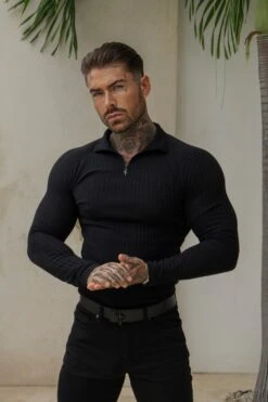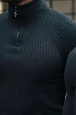 Father Sons Classic Black Ribbed Zip Funnel Neck Raglan Long Sleeve Crew – FSH1265