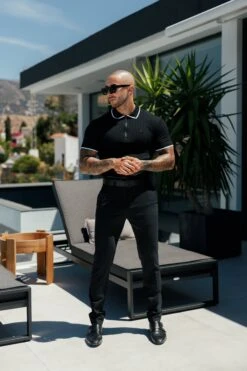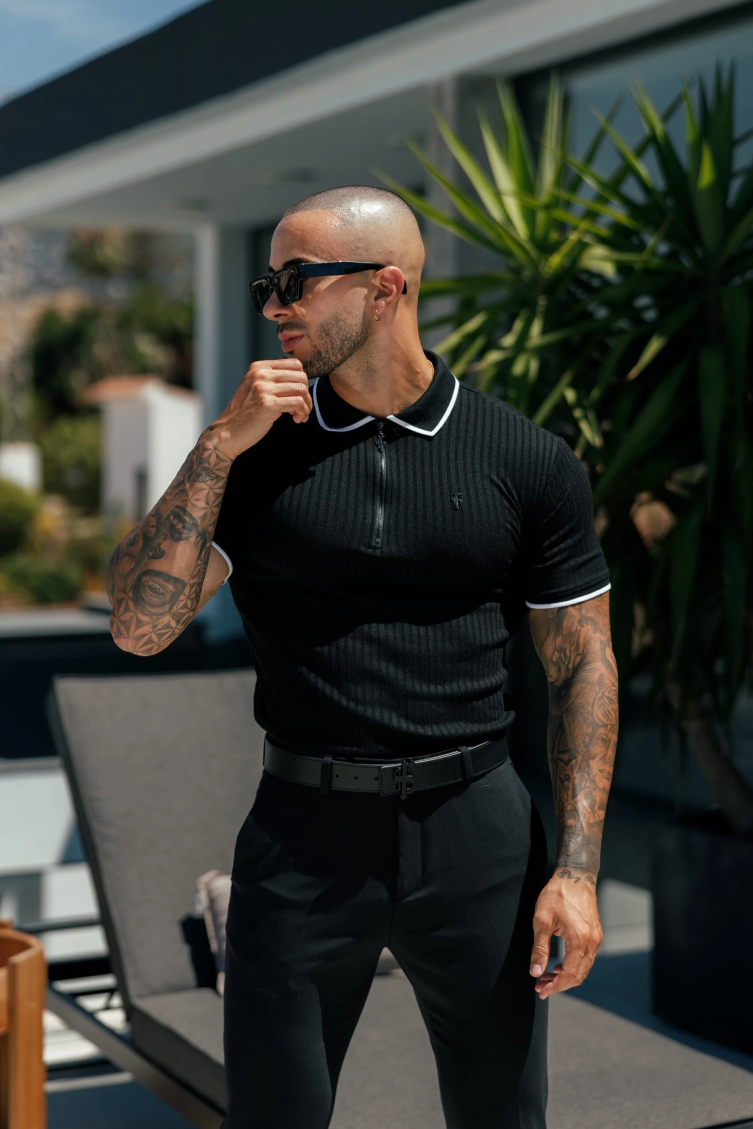 Father Sons Classic Black Ribbed Zip Polo with Contrast Short Sleeve – FSH1103