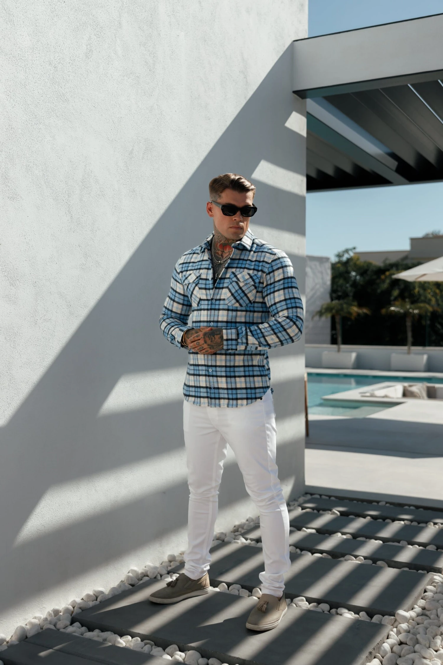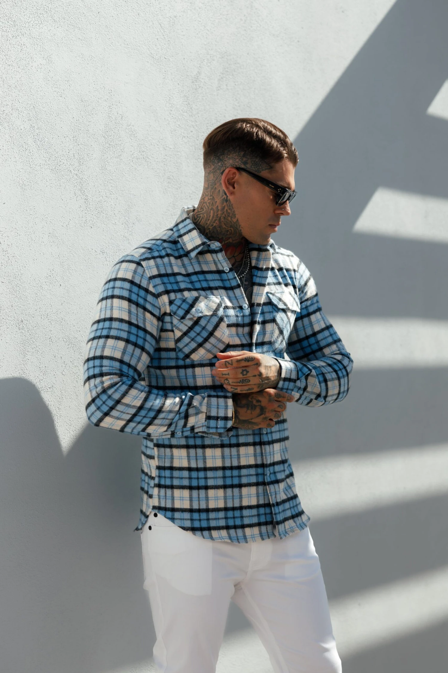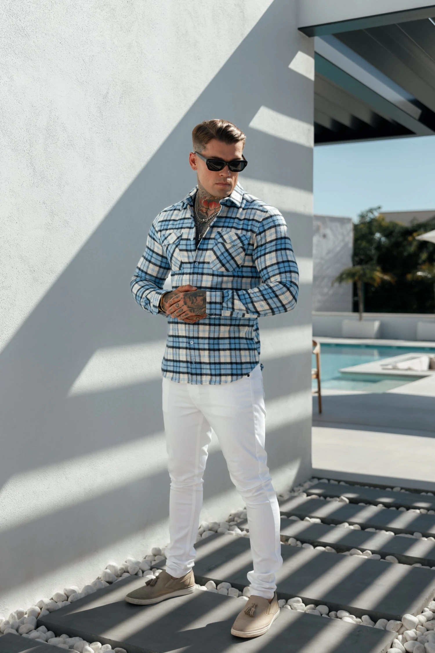 Father Sons Light Blue Check Shacket With Double Pockets Shacket – FS1072