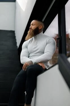 Father Sons Light Grey Funnel Neck Jumper With FS Branding – FSN193