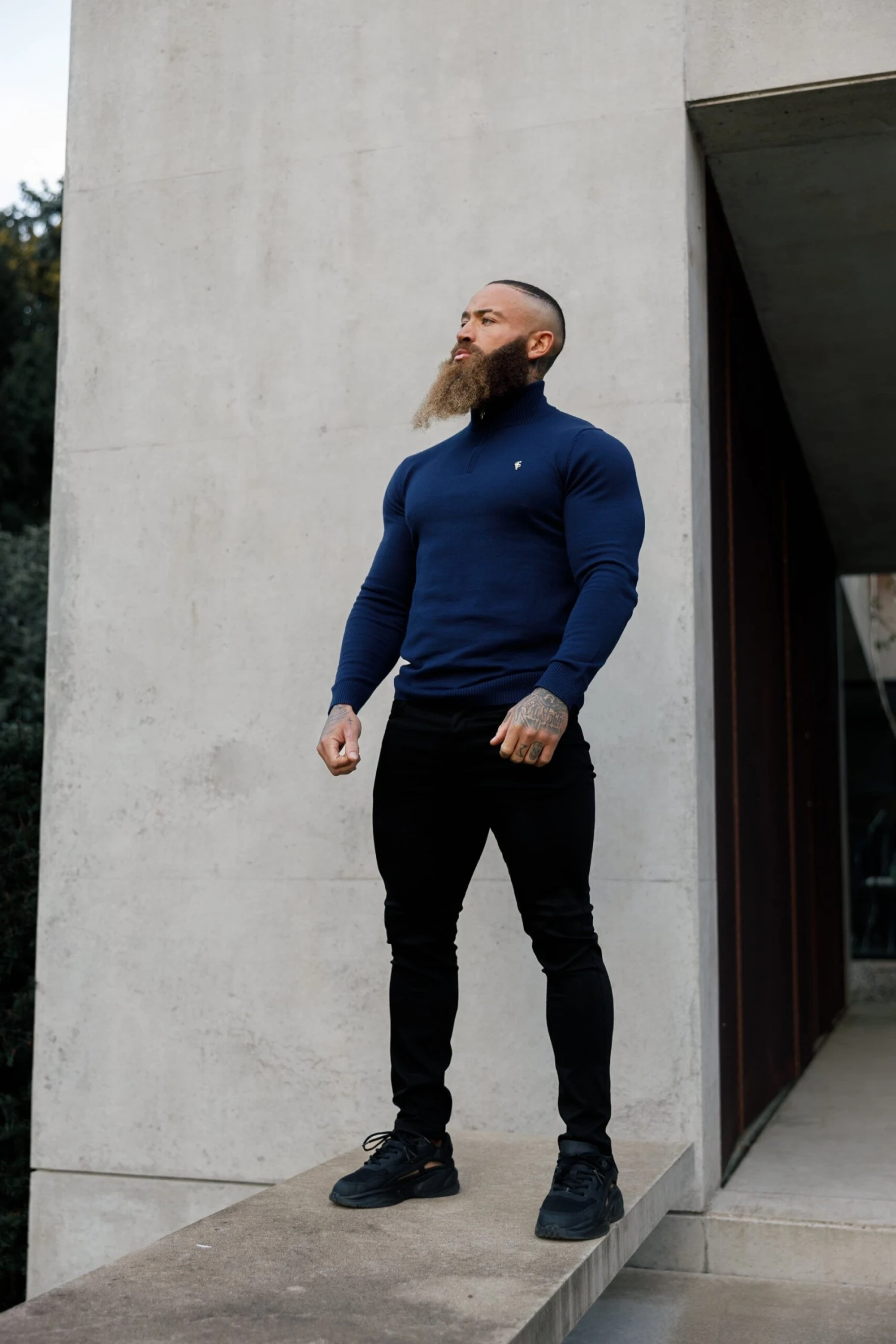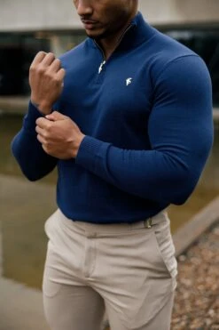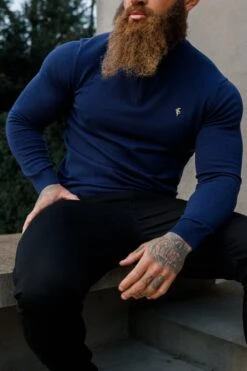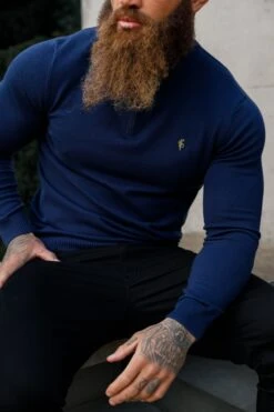 Father Sons Navy Funnel Neck Jumper With FS Branding – FSN191