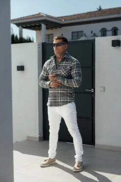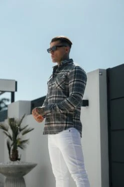 Father Sons Sage / Grey Check Shacket With Double Pockets Shacket – FS1075