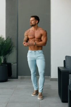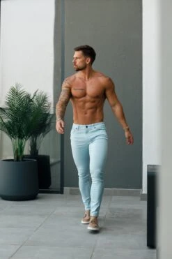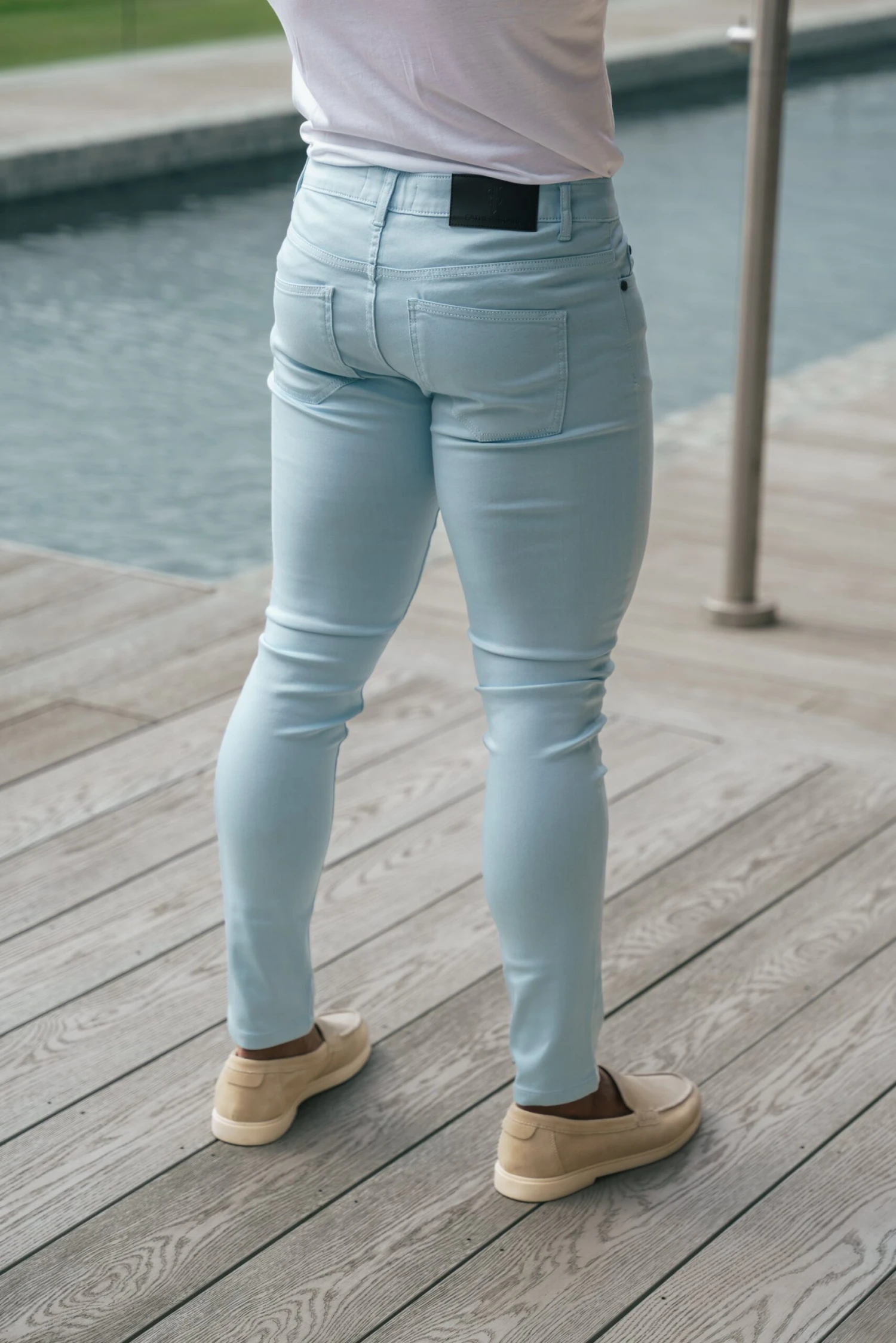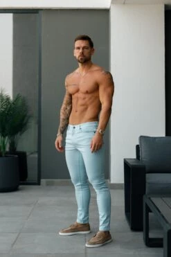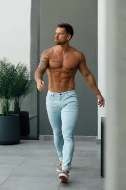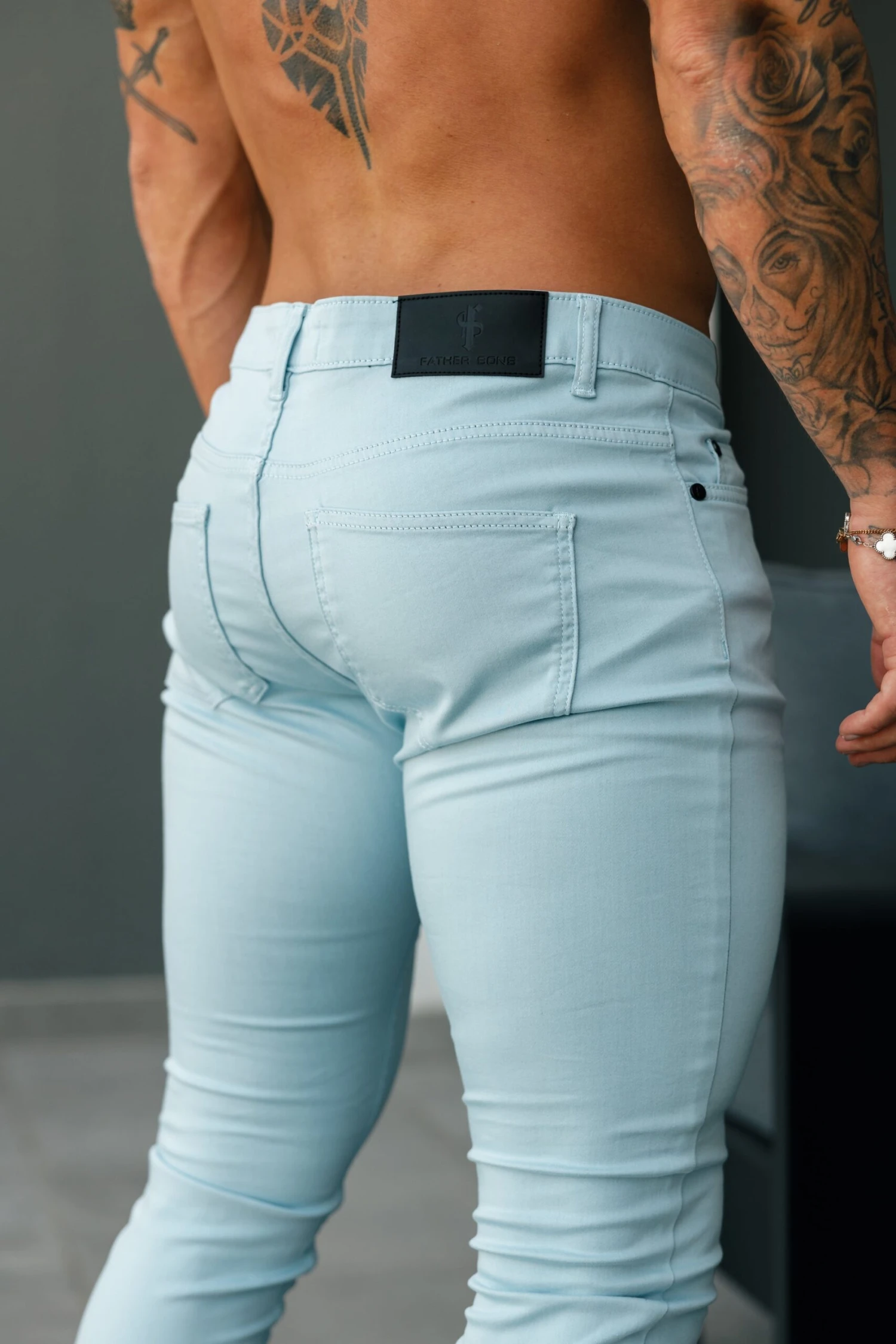 Father Sons Slim Stretch Pale Blue Sateen Trousers – FSH1147