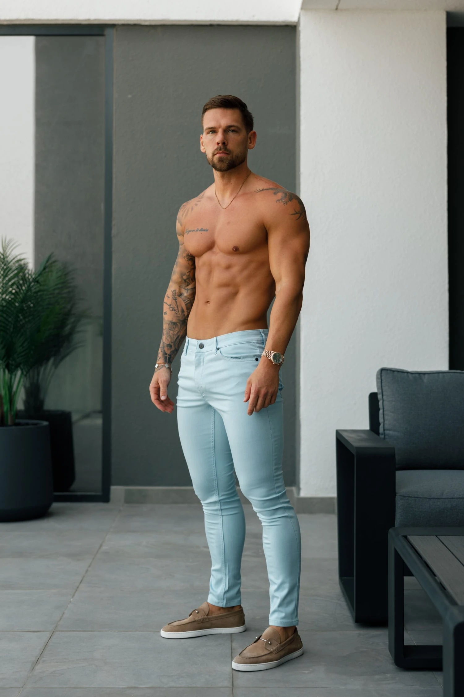 – Cotton/Elastane for the perfect stretch fit