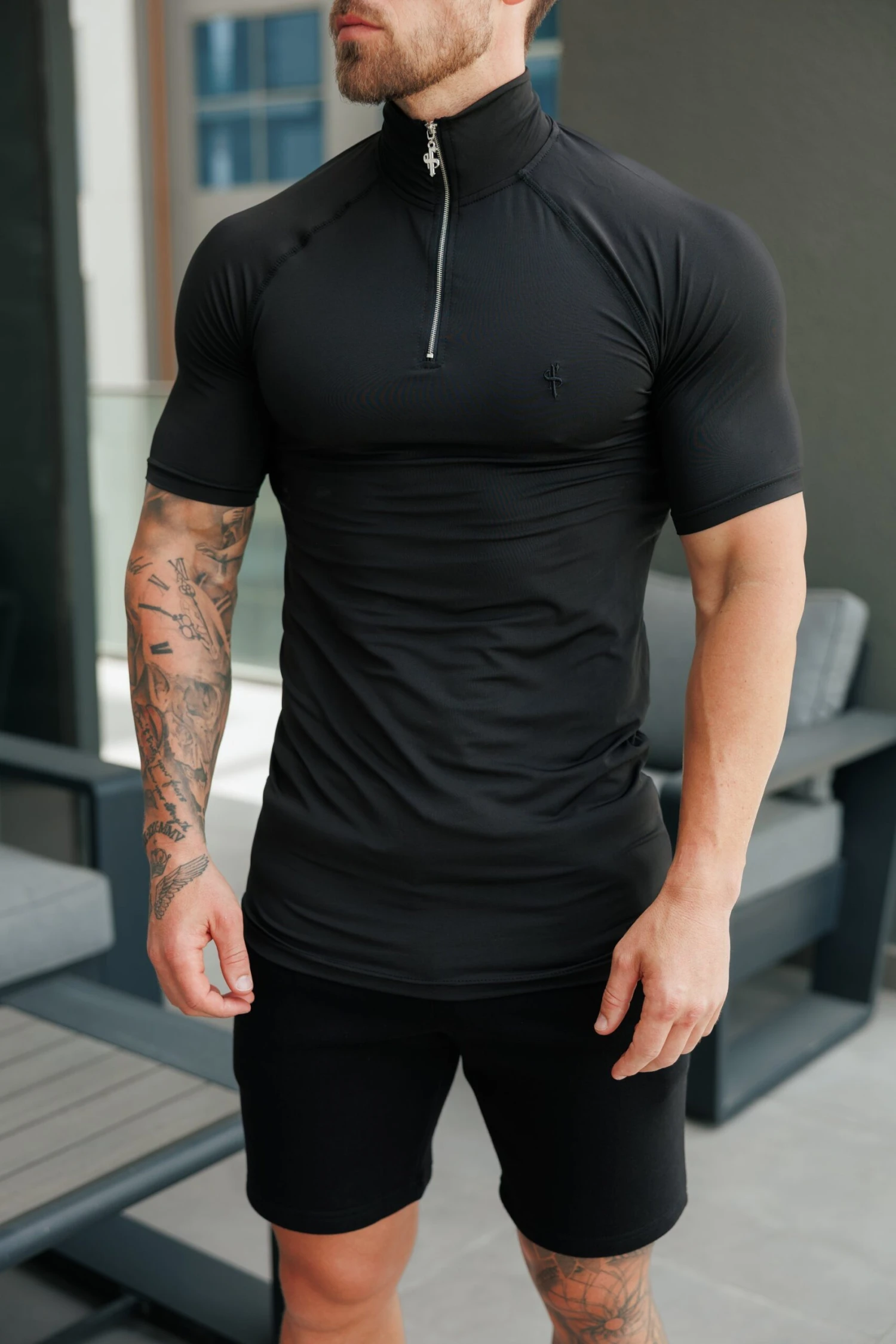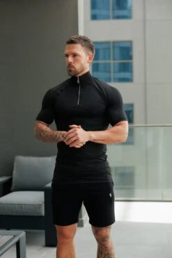 Father Sons SS Black Half Zip Gym Top – FSH1311
