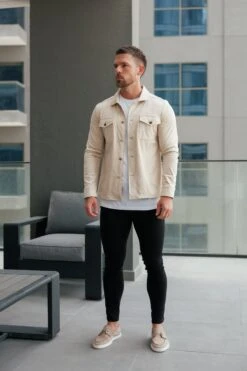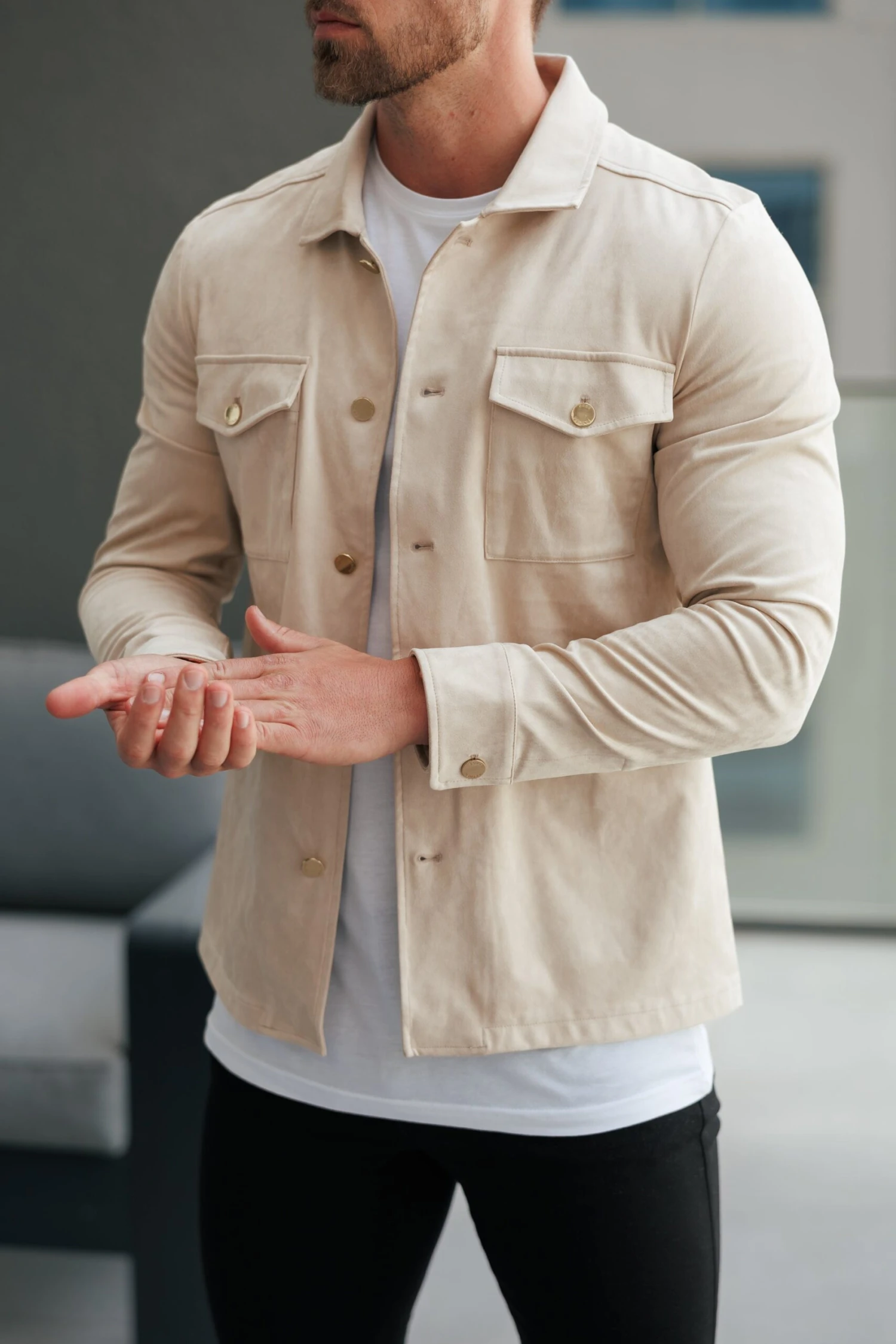 Father Sons Suede Feel Button Up Jacket Beige /Gold – FSN219
