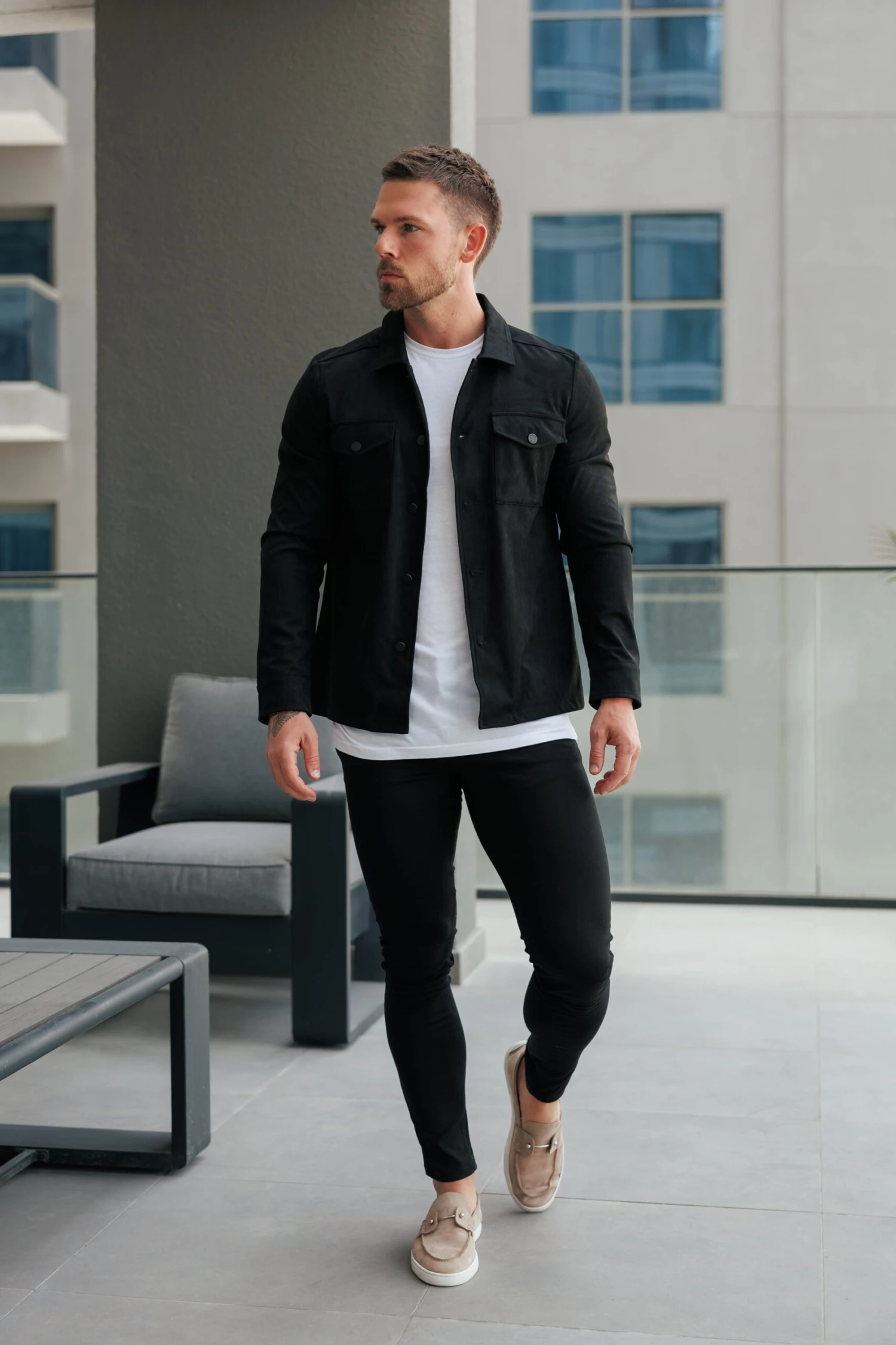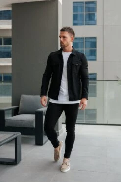 Father Sons Suede Feel Button Up Jacket Black – FSN218