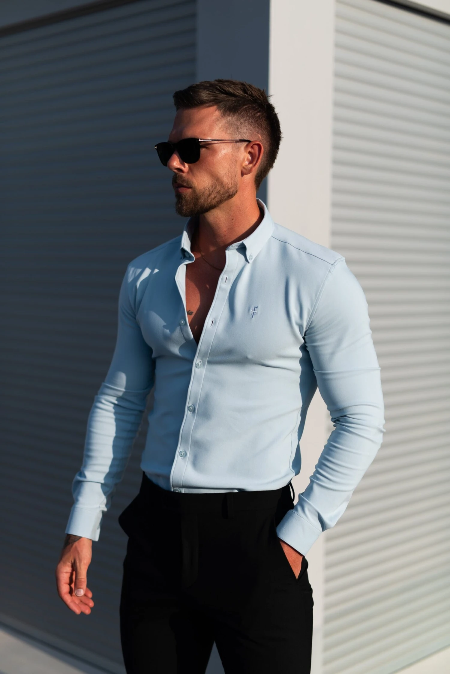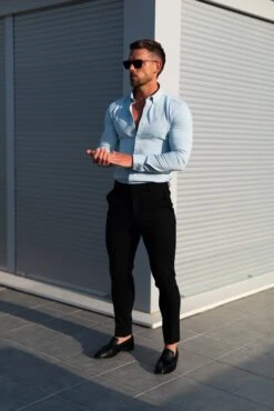 Father Sons Super Slim LS Powder Blue Scuba with Button Down Collar – FS1120