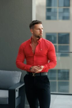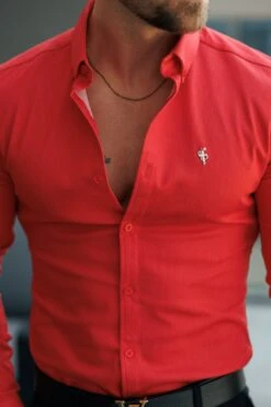 Father Sons Super Slim Stretch Postbox Red Denim Long Sleeve with Button Down Collar – FS1134