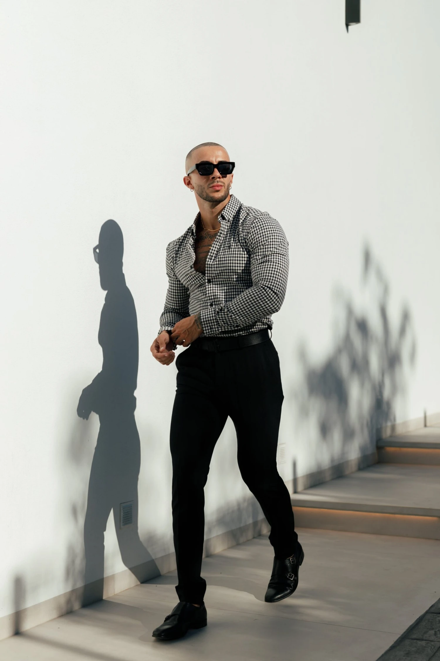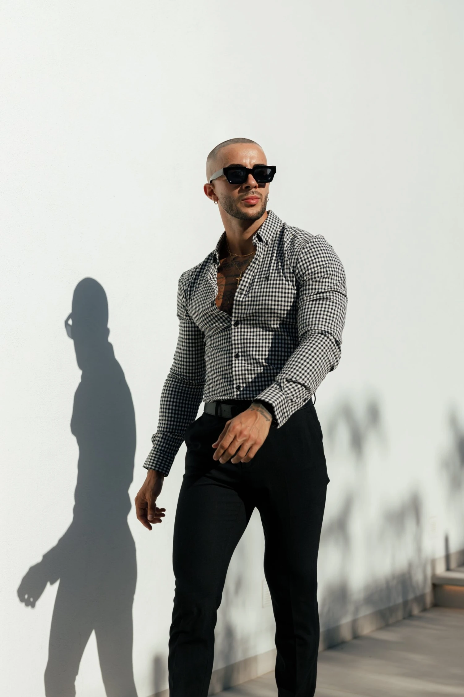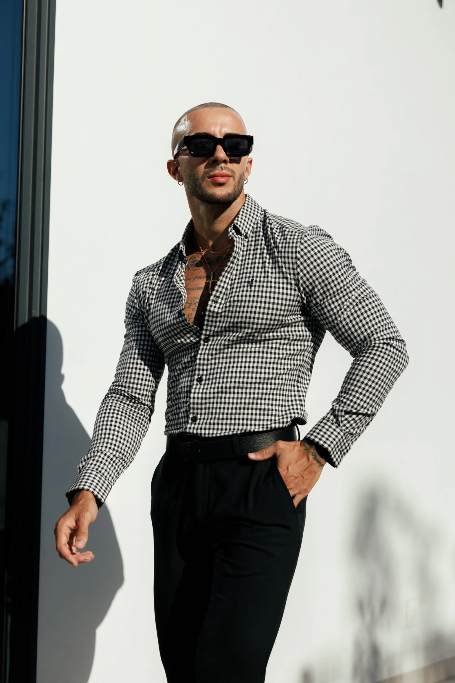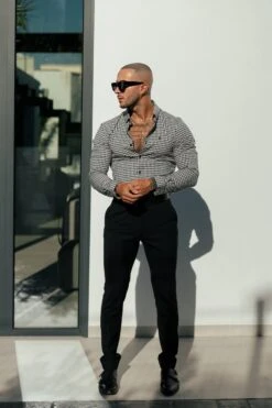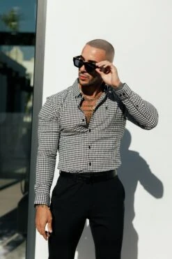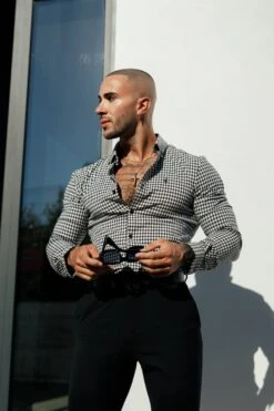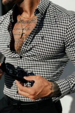 Father Sons Super Slim Stretch White / Black Check Long Sleeve with Button Down Collar – FS1069