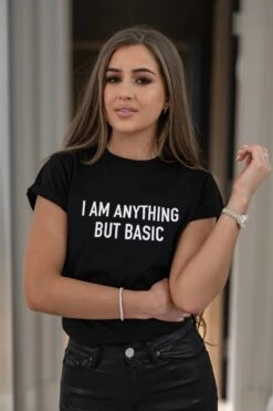 We got this slogan thing down to a Tee! This ‘I’m anything but basic’ T shirt is this seasons basic must have and our latest addition to our exclusive collection or Slogan tees. Made from 100% cotton so its comfortable and soft to the skin, and falls to an easy, relaxed silhouette. We have perfected our cotton to wash up as good as new for durable wear. Spice up your casual wardrobe with this pretty addition. Tuck into jeans and pair with boots/trainers, or dress is up with heels.