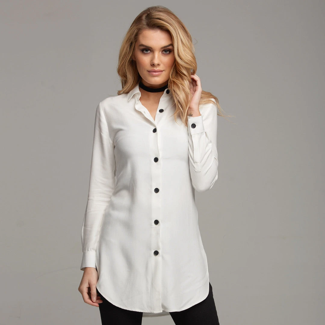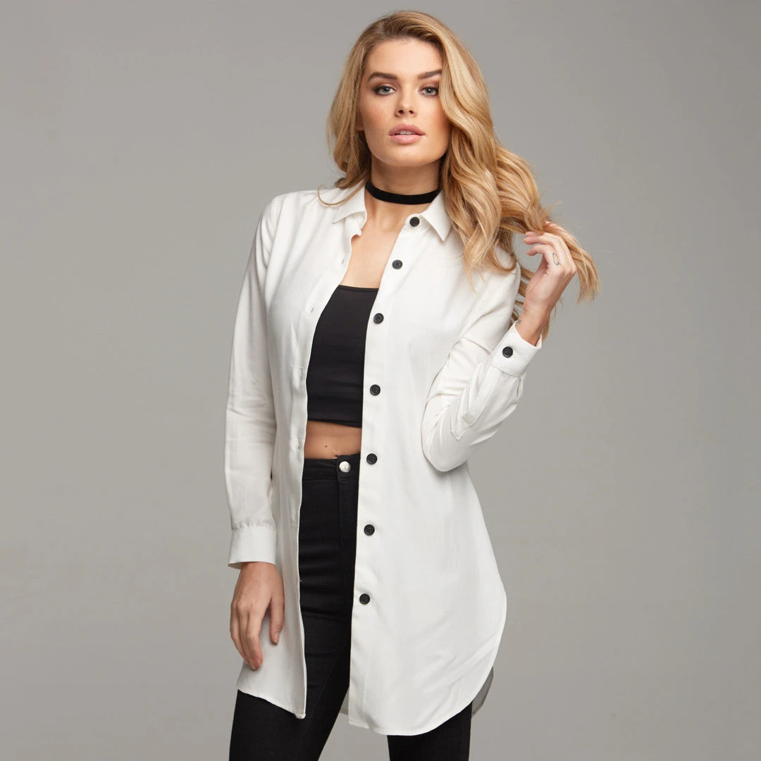 HOLLA and SLAY in the longline ‘Rae’. This design is every girls go to! A over shirt, a longline worn buttoned up or even a mini dress all rolled into one! It’s super slim fit and made from lux 100% Modal which has a perfect drape and is soft to the touch not forgetting its contrast black buttons, be sure not to fade into the background in this wardrobe must have!